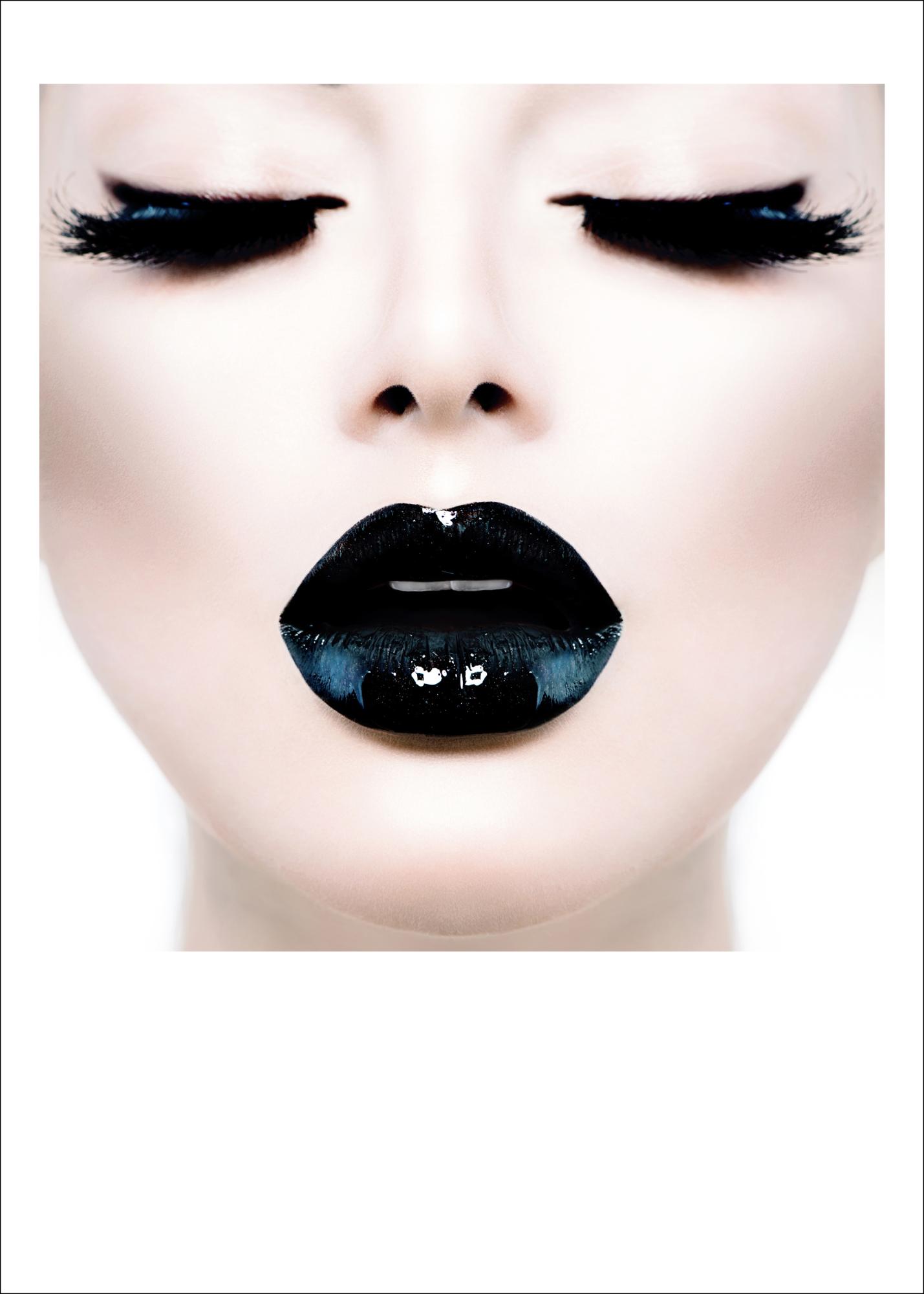 Un poster artistic fotografic minunat deosebit sub tema modei! Aici, buzele negre pline și genele negre groase întâlnesc un ten alb ca porțelanul și un fundal alb. Un poster elegant și plin de contraste, ușor de combinat cu alte preferate pe un perete mai mare cu tablouri.