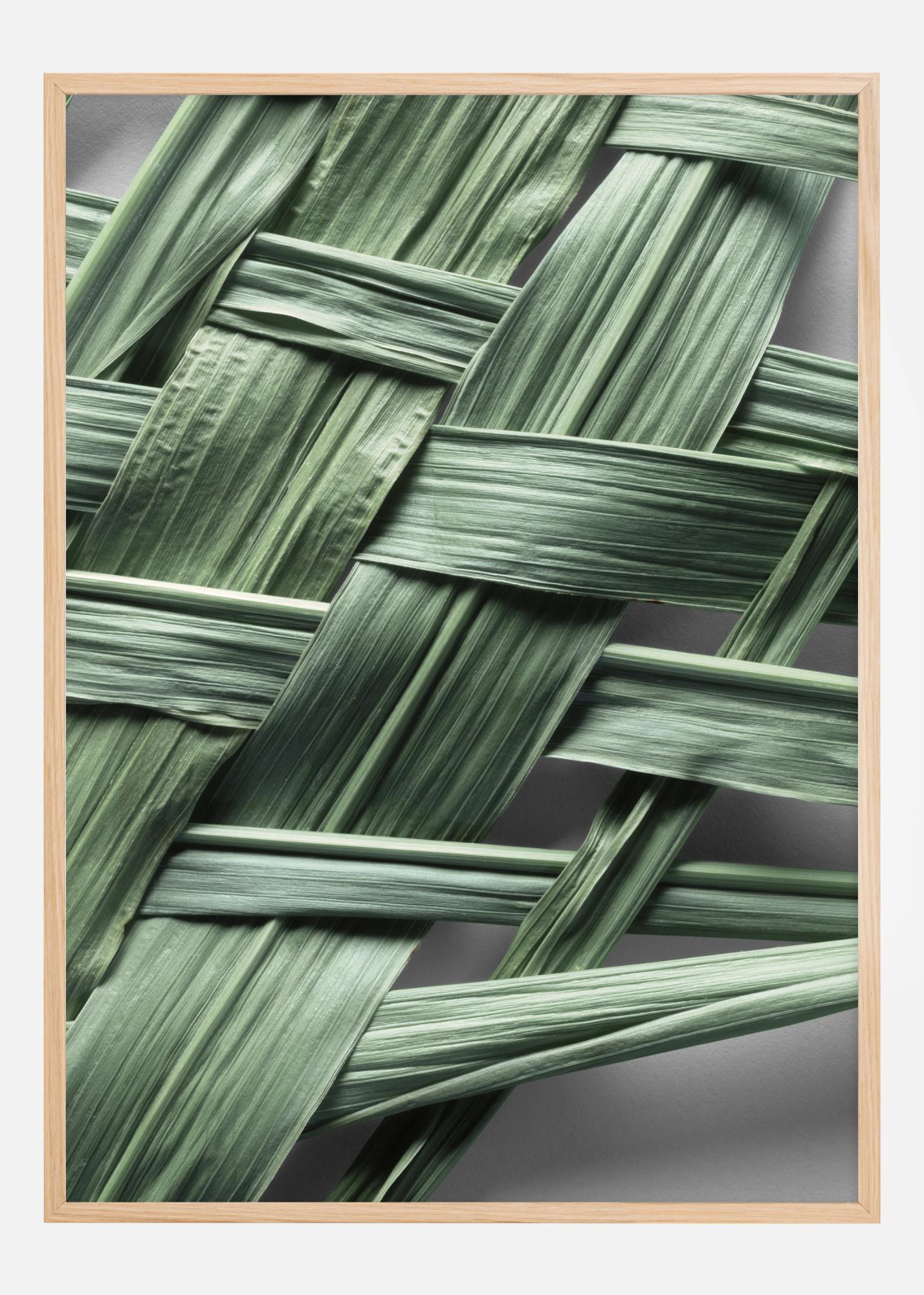 Această poster elegantă și inspirată din natură prezintă o țesătură detaliată de frunze verzi, ale căror linii se intersectează într-o dezordine organizată. Culoarea verde vibrantă și diferitele texturi care ies în evidență din frunze creează o impresie liniștitoare și proaspătă, contribuind la o senzație de prezență a naturii în interior.