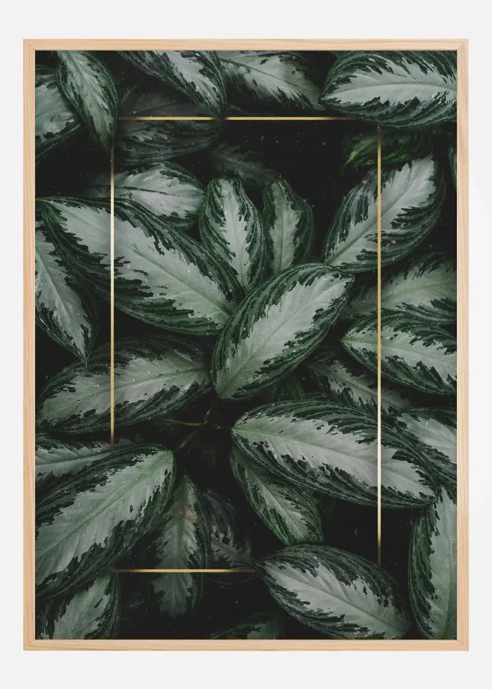 Cu nuanțele sale îndrăznețe și vii de verde, acest poster oferă un element revigorant de natură în casa sau biroul dumneavoastră. Motivul ilustrează o colecție densă de frunze, al căror model detaliat în diferite nuanțe de verde pe un fundal întunecat evidențiază frumusețea lor naturală. Textura vie a fiecărei frunze și dungi întunecate contrastante creează o dinamică vizuală care este atât liniștitoare, cât și energizantă. Această imprimare este un omagiu adus designului simplu, dar complex, al naturii, ideală pentru cei care doresc să introducă elemente naturale și organice în decorul lor.