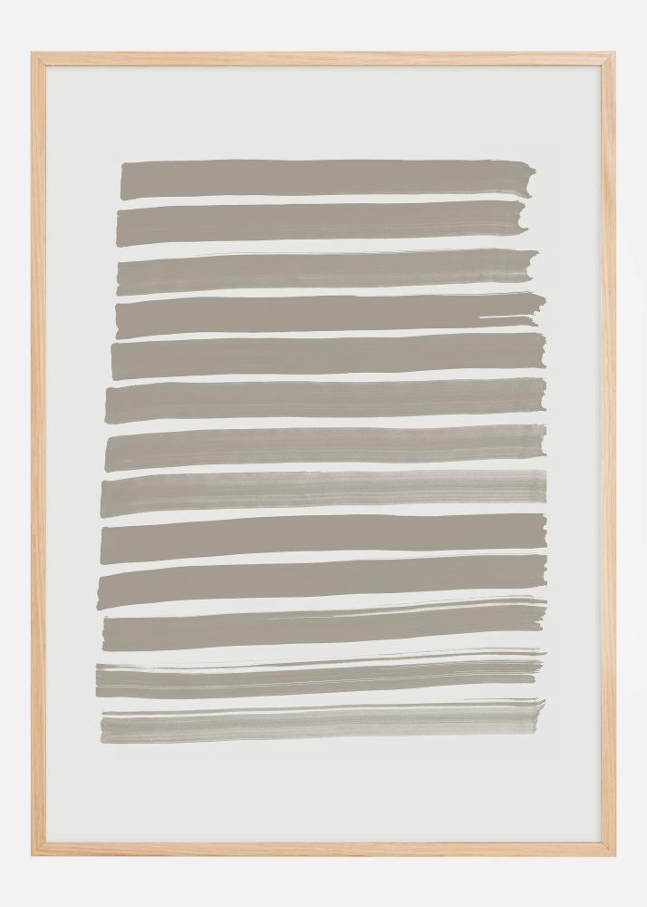 Introdu un calm și o atmosferă liniștită în spațiul tău cu acest poster modern care prezintă o serie de trăsături de pensulă pictate manual. Farmecul minimalist al operei de artă se reflectă în diferitele nuanțe de gri care creează un efect texturat pe fundalul crem. Acest poster este o alegere excelentă pentru cei care apreciază arta subtilă și care caută un element sofisticat în designul interior.