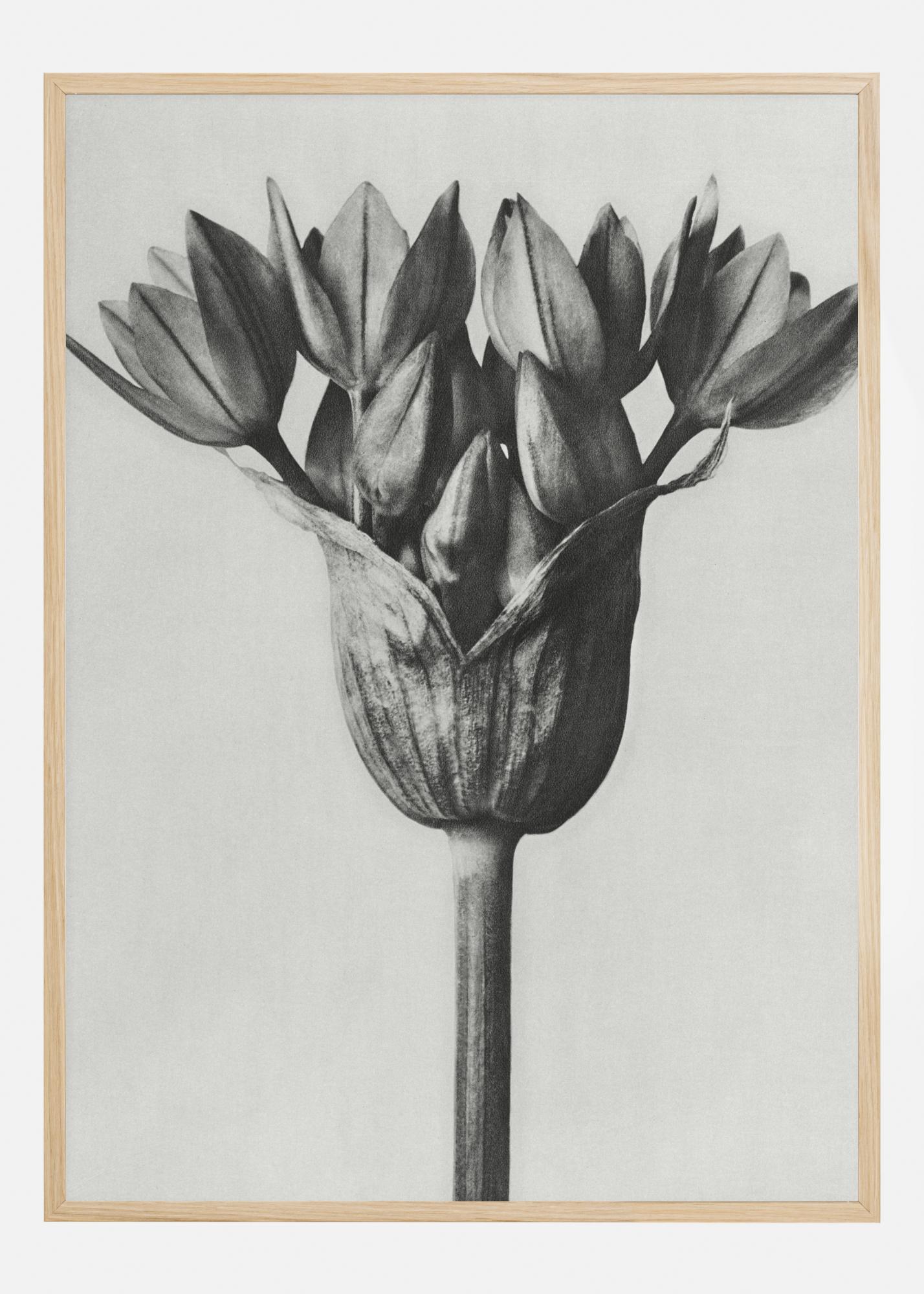 Un poster frumos alb-negru cu o floare din care răsar multe flori mai mici. Ilustrează un simbol al fericirii prin eleganța și simplitatea sa. Efectele de lumină și umbră creează un imprimeu frumos pe un fundal gri simplu. Acest lucru îl face un imprimeu potrivit într-un mediu spațios, cum ar fi camera de zi sau dormitorul.