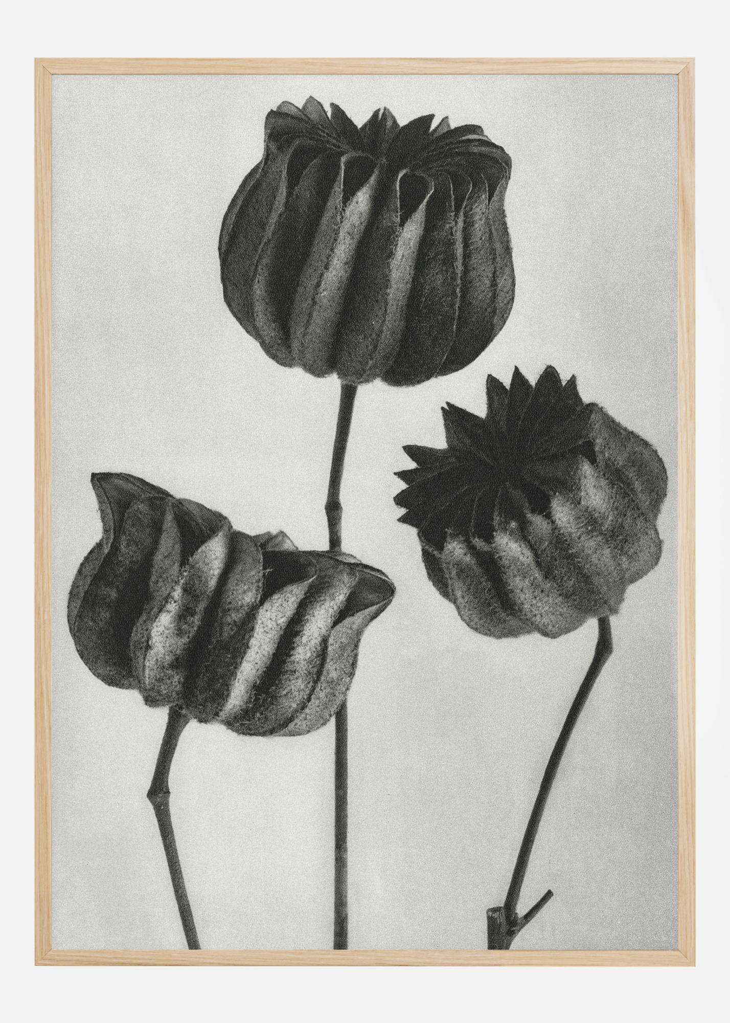 Un imprimat minunat alb-negru modern cu trei flori la înălțimi diferite. Floarea centrală are o tulpină dreaptă, în timp ce celelalte două sunt îndoite. Pe fundalul său alb, acest poster simplu dar delicat este perfect pentru a fi agățat pe un perete luminos într-un living.