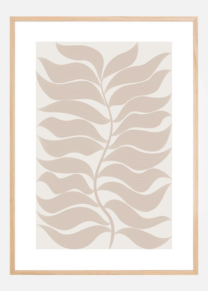 O poster botanic cu frunze. Această pictură delicată înfățișează o imagine moale și simplă a unsprezece frunze pe fiecare parte a unei tulpini. Pe un fundal alb, aceasta este imprimarea perfectă pentru toți iubitorii de natură sau pentru cei interesați de frunze.