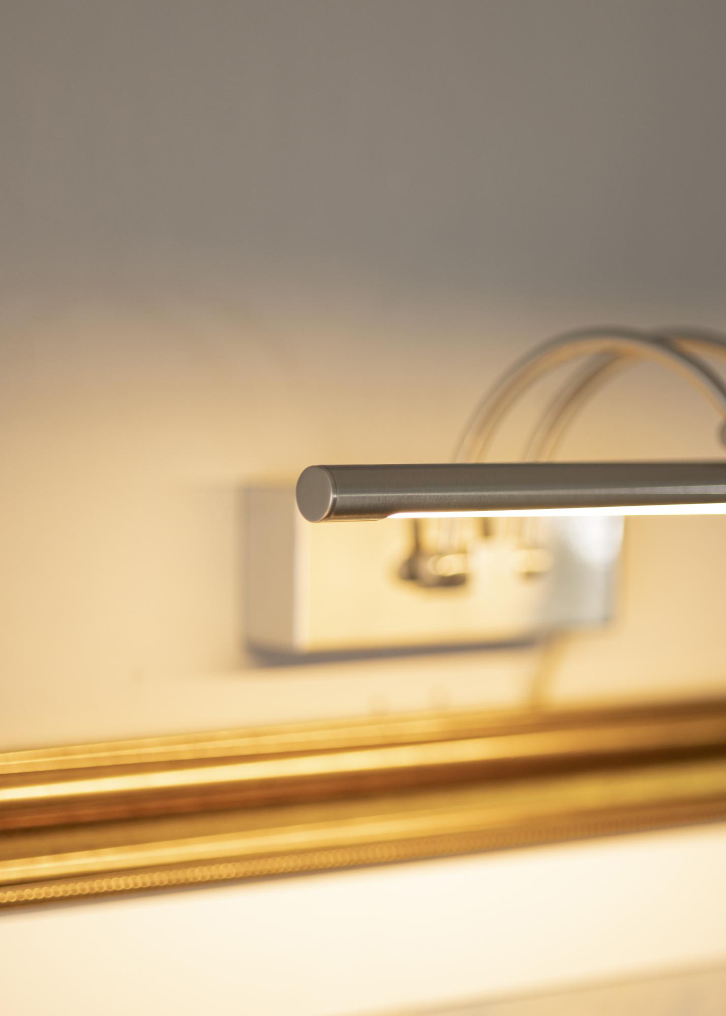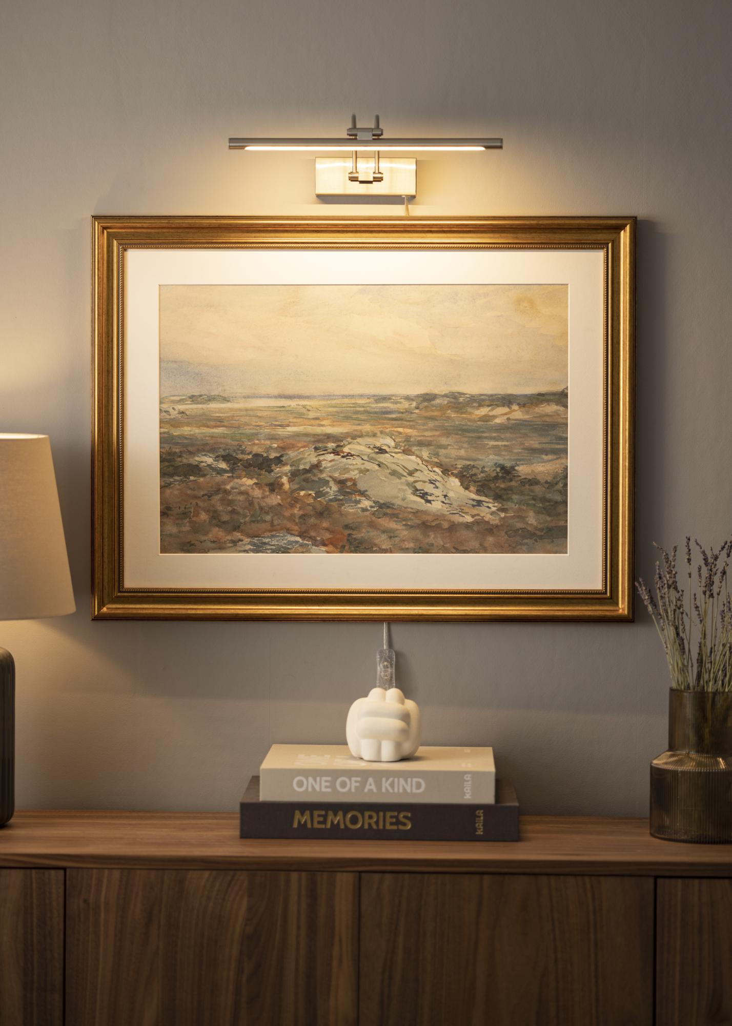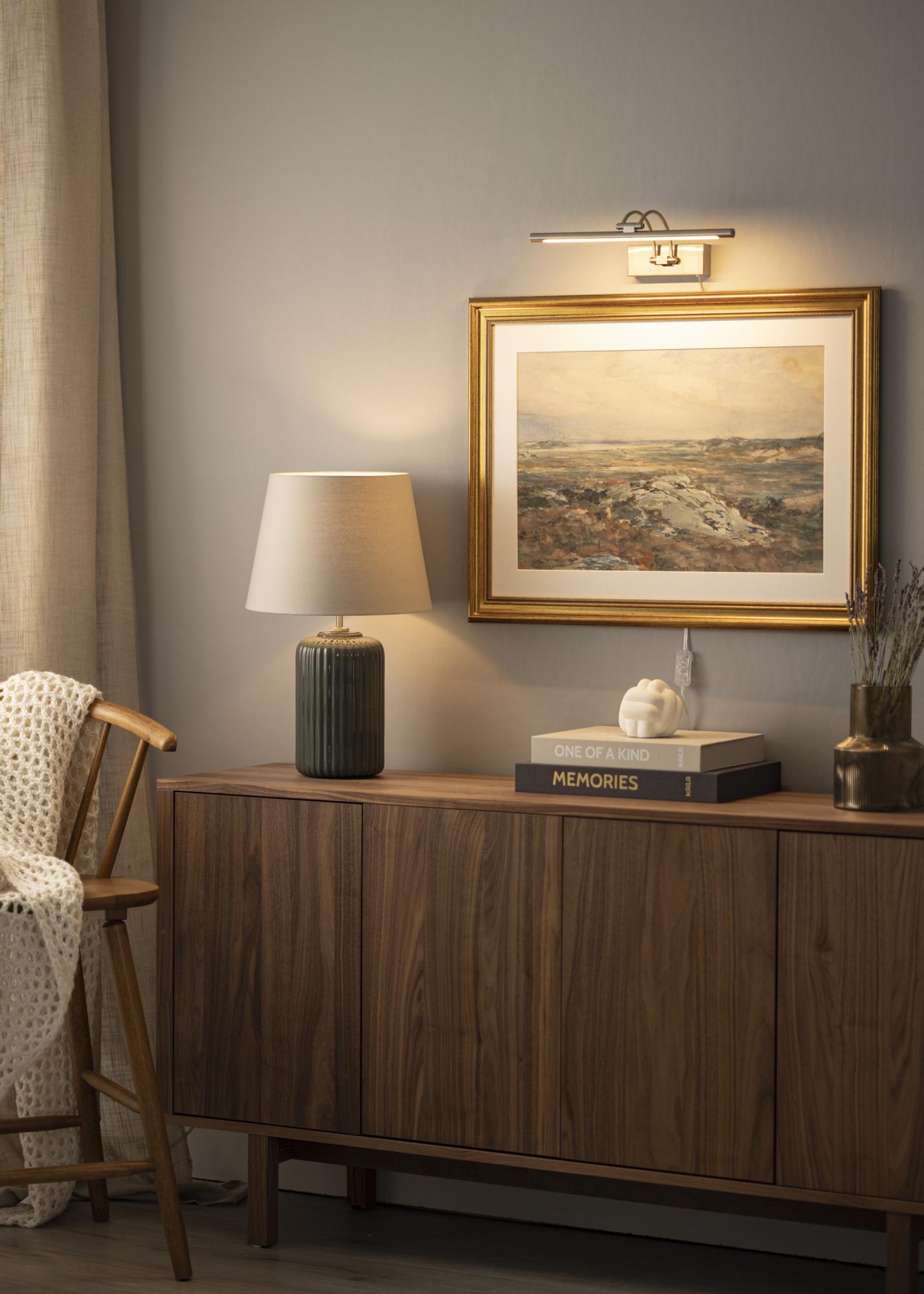 Iluminat pentru tablouri cu design suedez modern, potrivit pentru tablouri cu o lățime de 60-100 cm. Lampa are o înălțime de 5 cm și o lungime de 37 cm, cu o distanță față de perete de 20 cm. Cu iluminarea sa puternică de 720 lumeni, obții o iluminare plăcută chiar și pe tablouri mai mari.