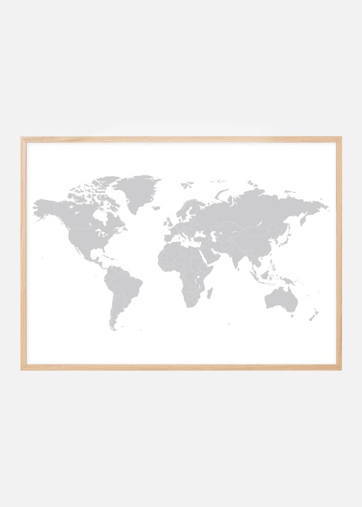 Poster grafic cu o hartă a lumii într-o culoare gri plăcută, care arată elegant când este agățată împreună cu alte afișe pe un perete cu rame. Tiparul elegant se potrivește în toate tipurile de medii, atât în spațiile publice, cât și acasă. Cu alegerea unei rame pentru a completa posterul, acesta poate fi potrivit pentru toate stilurile de decor și schemele de culori. Posterul este un cadou apreciat de oferit cuiva care trebuie să decoreze pereții.