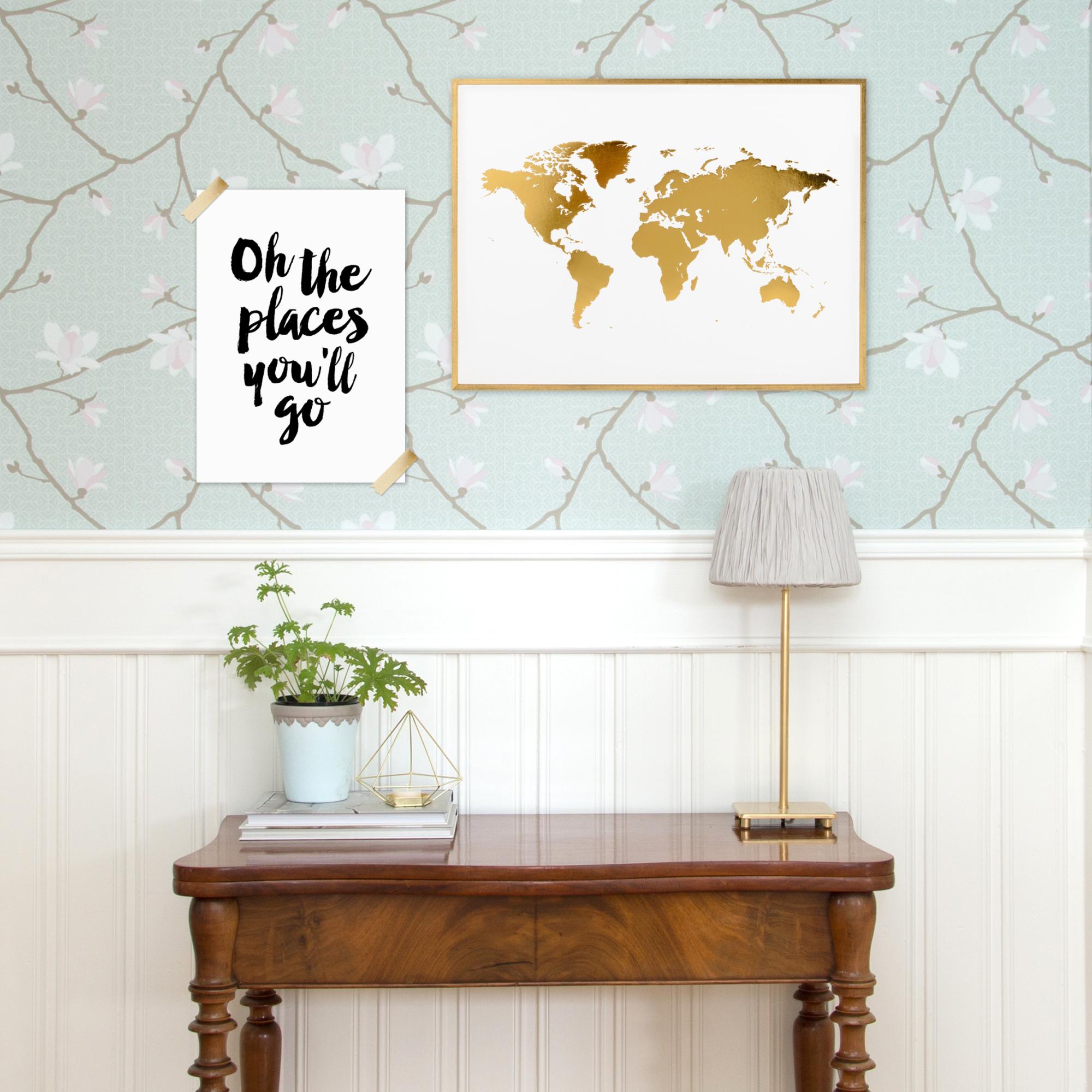 Harta lumii în culoarea auriu - Foliat Poster (30x40 cm)
