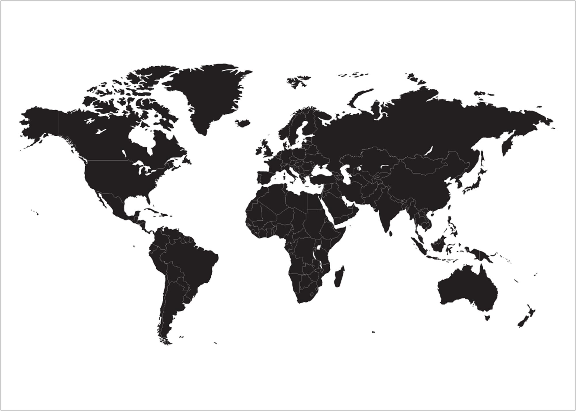 Hartă mondială alb-negru stilată cu continentele în negru, unde țările sunt marcate cu linii albe subțiri. Posterul grafic se potriveste la fel de bine în medii moderne minimaliste, precum și în amenajări interioare cu mobilier clasic. Alege un cadru frumos care să se potrivească cu restul interiorului pentru ca tabloul să se integreze în ansamblu sau înrămează harta cu un cadru care să evidențieze cu adevărat motivul și să îl facă să iasă în evidență pe perete.