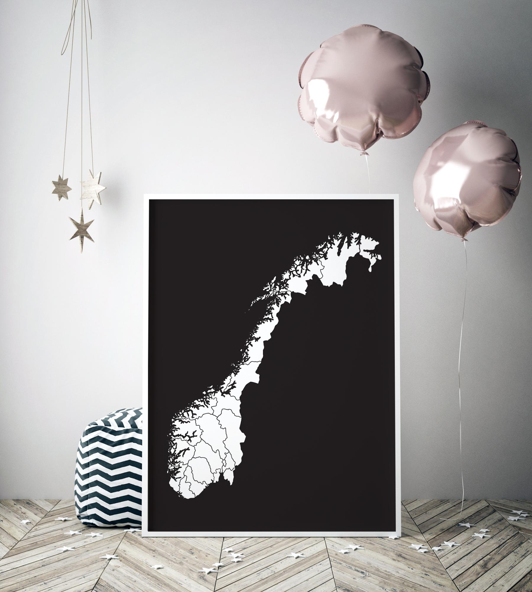 Permite ca sentimentele tale calde pentru Norvegia să se reflecte în interiorul tău! Aici avem o hartă grafică elegantă a țării care cu siguranță va face peretele frumos! Harta este disponibilă în culorile albastru, gri, verde, roz, negru cu fundal alb, alb cu fundal negru și în culorile curcubeului. Alege dintre 8 dimensiuni diferite și completează cu o ramă potrivită!