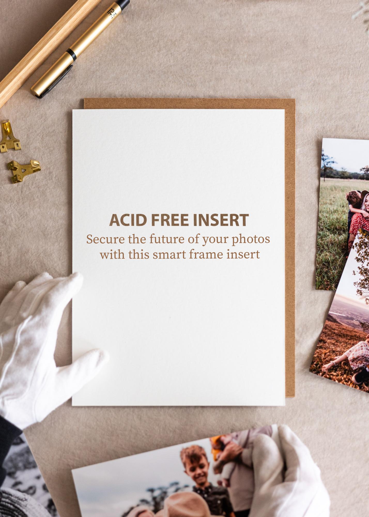 Nu uita că toate ramele noastre personalizate au deja spatele fără acid și, prin urmare, nu necesită completarea cu inserții fără acid.