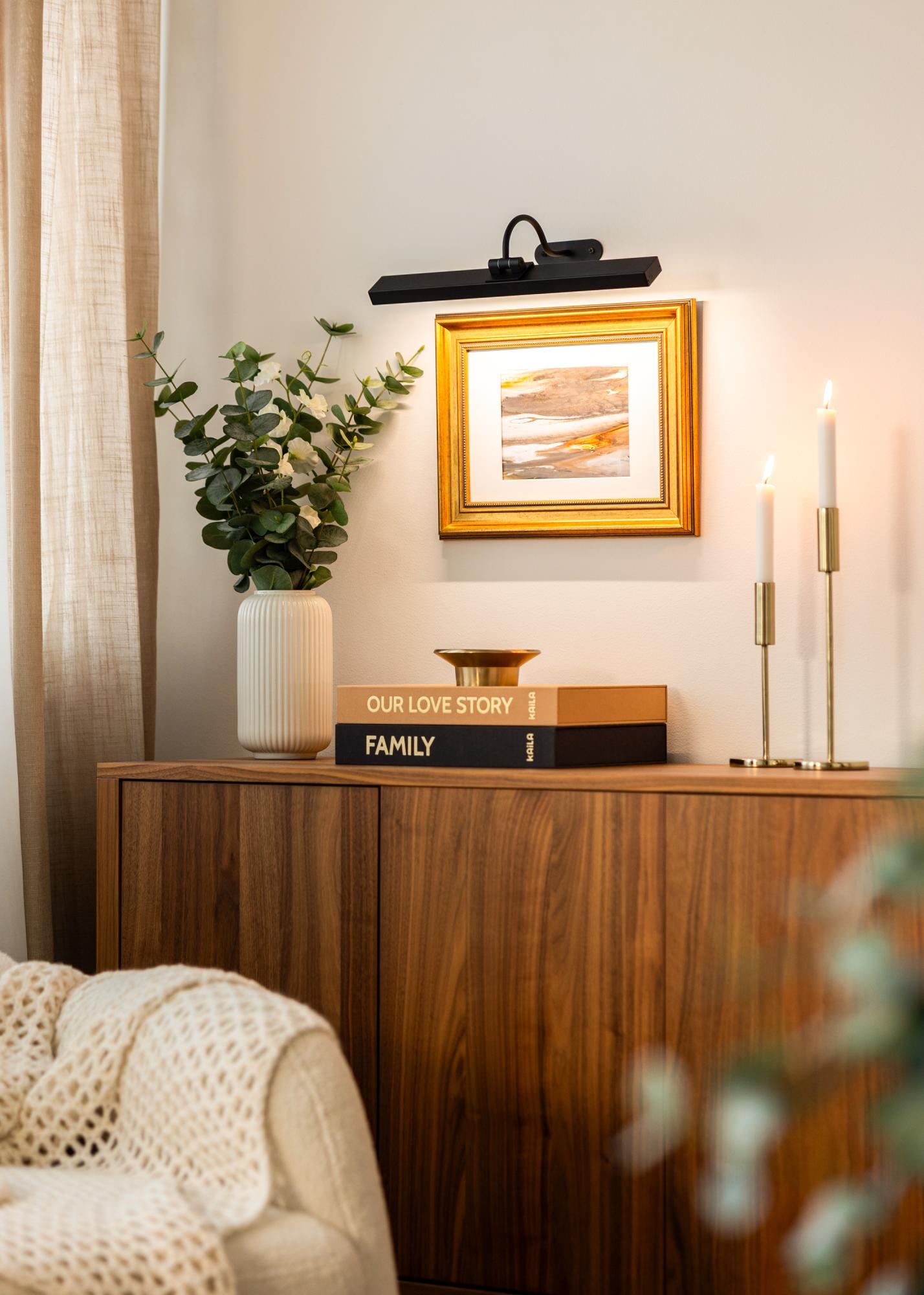 Oferă operelor tale de artă atenția pe care o merită cu KAILA Flare – un iluminat pentru tablouri elegant și alimentat cu baterii, în negru. Datorită designului fără cabluri, poți plasa iluminatul liber fără a te gândi la prize electrice sau cabluri vizibile. Finisajul elegant, negru, oferă o expresie modernă, în timp ce brațul de lumină reglabil face ușor să direcționezi lumina pentru a evidenția detaliile și culorile în cel mai bun mod. Simplu de montat și ușor de utilizat – o soluție practică și stilată pentru arta ta de pe perete.