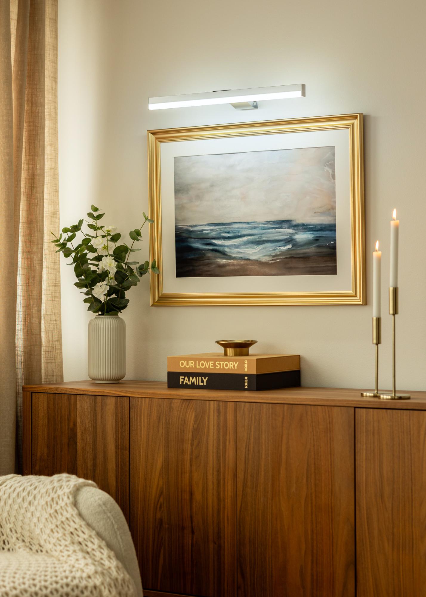 Această iluminare pentru tablouri alimentată cu baterii oferă o soluție practică și flexibilă pentru a ilumina operele tale de artă fără să fie necesar să tragi cabluri. Datorită designului alimentat cu baterii, poți plasa lampa oriunde, ceea ce îți permite să adaugi un punct de lumină stilat și elegant în casa ta, peste, de exemplu, un tablou sau o fotografie. Cu o adâncime de 15 cm și o lungime de 55 cm, lampa este perfect adaptată pentru a oferi o iluminare uniformă pentru imagini de până la 80 cm lățime.