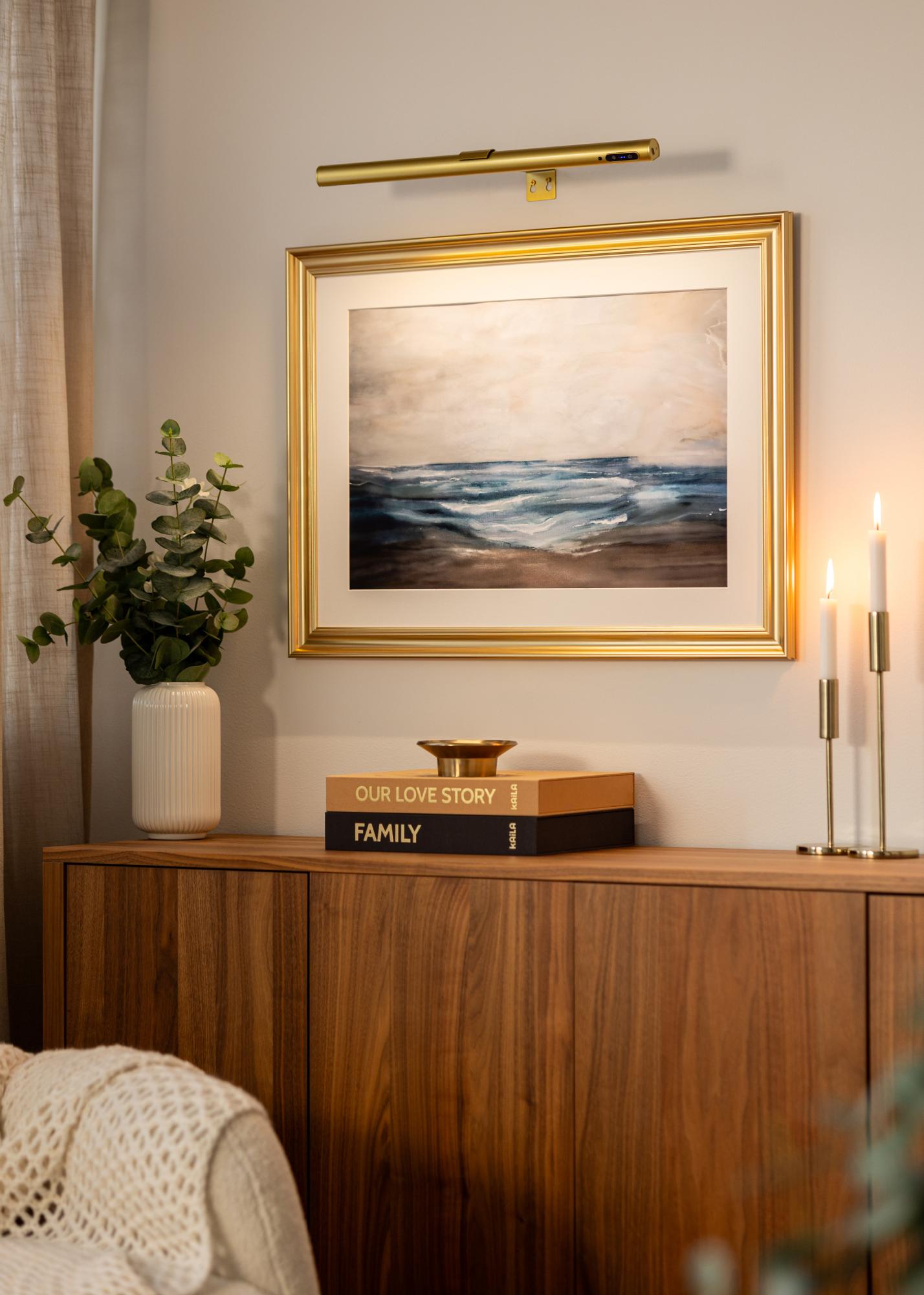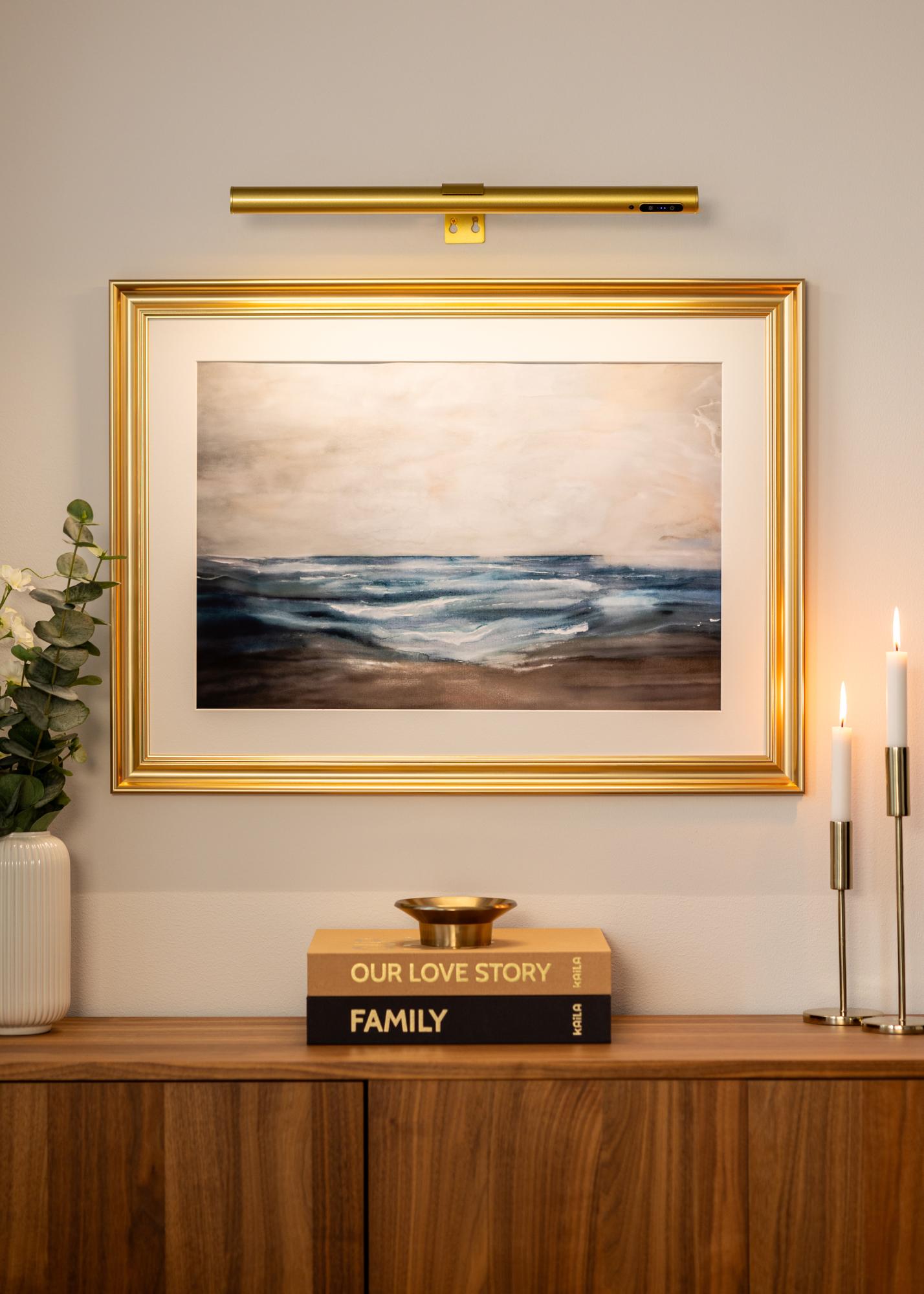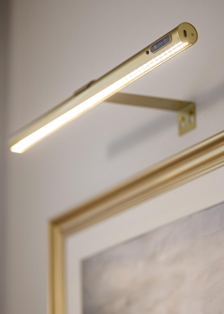 KAILA Halo este o iluminare elegantă pentru tablouri, alimentată cu baterii, în aur, perfectă pentru a-ți ilumina operele de artă fără cabluri deranjante. Datorită designului fără cablu, o poți amplasa oriunde fără a ține cont de prize. Finisajul elegant auriu oferă un aspect exclusivist, în timp ce lumina se răspândește uniform pentru a evidenția detaliile și culorile într-un mod frumos. Ușor de montat și simplu de utilizat – o soluție practică pentru a oferi tablourilor tale atenția pe care o merită.