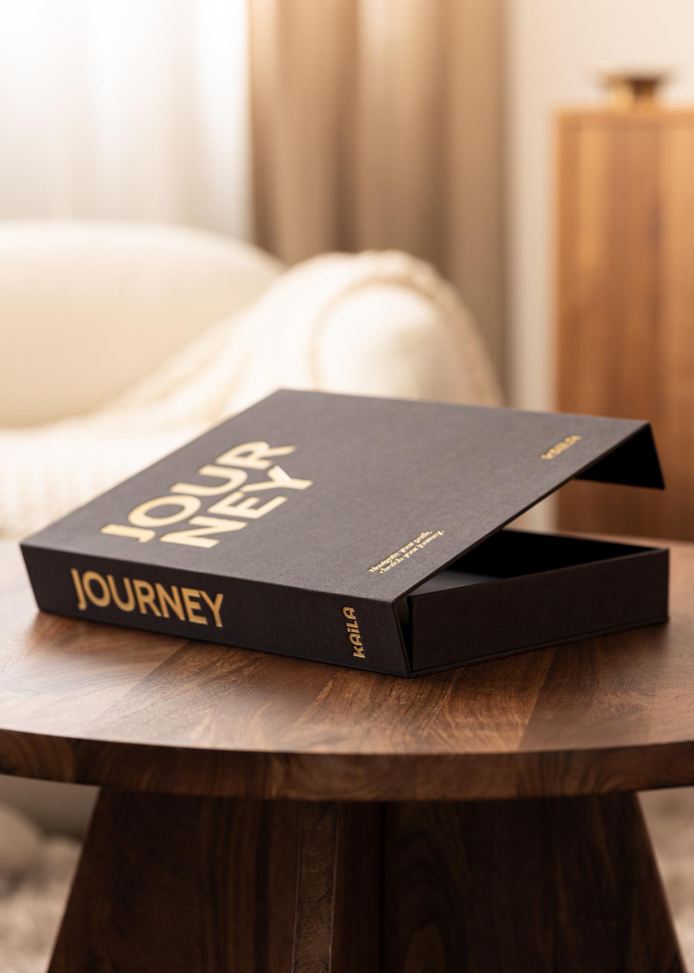 Descoperiți KAILA JOURNEY Black - un album foto elegant și rafinat, proiectat să fie un detaliu de interior frumos în casa dumneavoastră. Cu coperțile sale bej și paginile negre, acest album devine o Carte de Masă perfectă, pe care o puteți expune cu mândrie.
