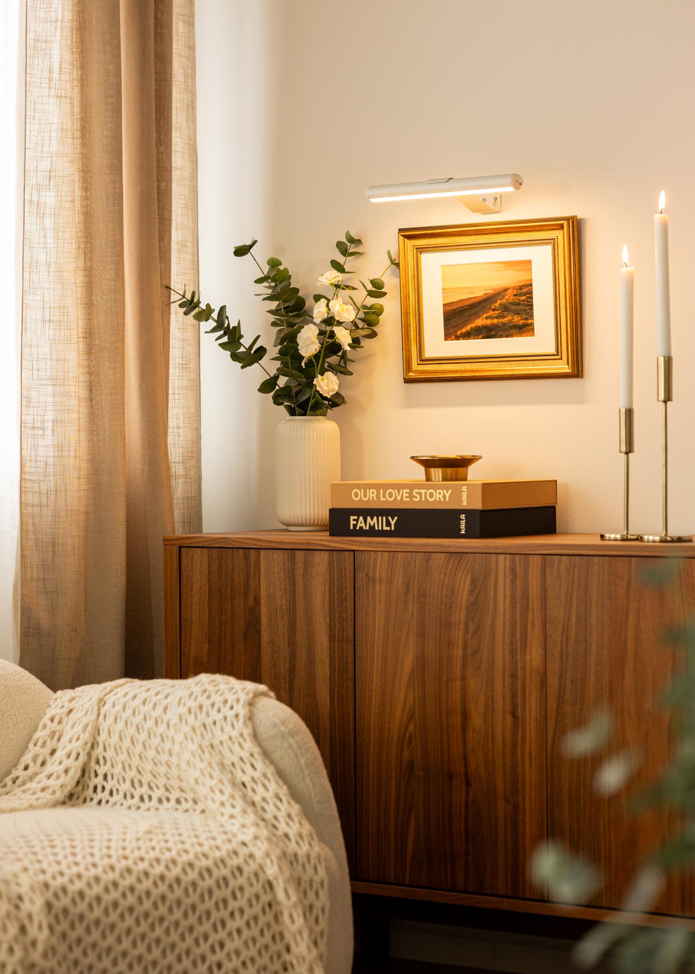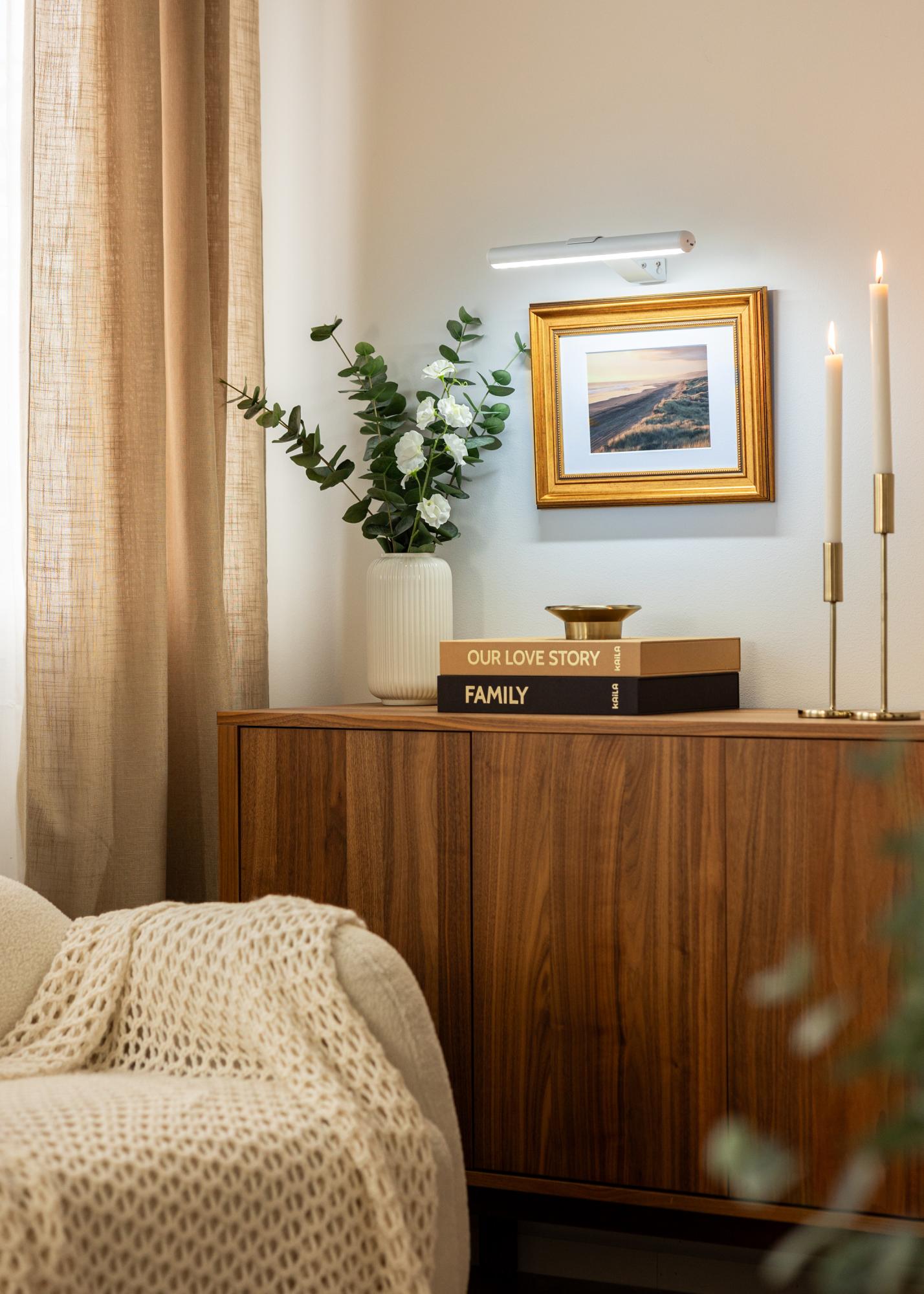 Iluminarea are o sursă de lumină LED care poate fi ajustată în trei temperaturi de culoare diferite: 3000K, 4000K și 6000K. Acest lucru îți permite să adaptezi lumina în funcție de dorința de a crea o atmosferă caldă, neutră sau rece în cameră. Cu o luminozitate de 262-300 lumeni, obții un iluminat plăcut care evidențiază opera de artă fără a fi prea intens.