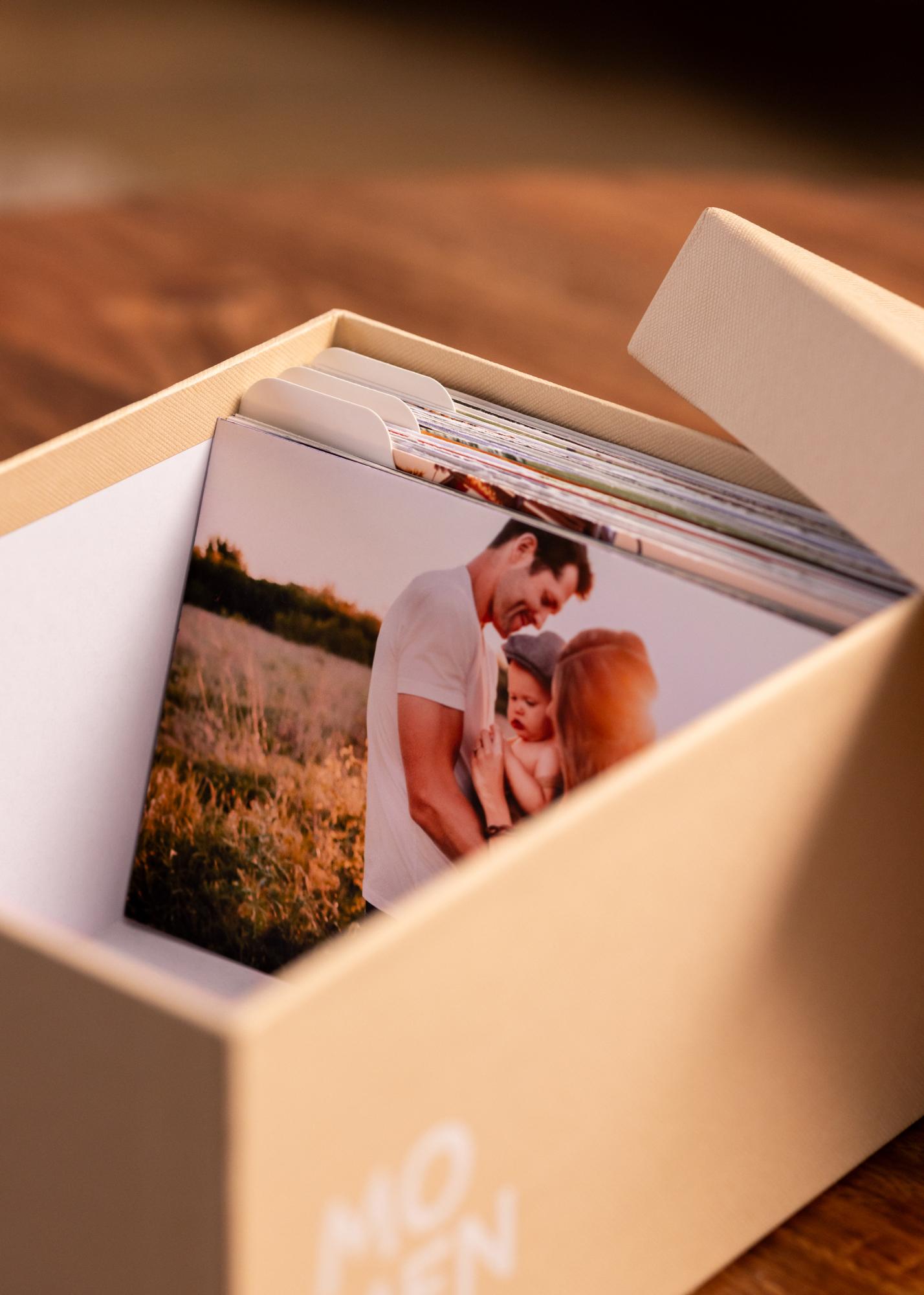 KAILA Memories Photo Box este o cutie foto elegantă și funcțională care poate ține până la 700 de imagini de dimensiunea 10x15 cm. Designul de culoare crem oferă o senzație moale și stilată care se potrivește în majoritatea caselor. Perfectă pentru a organiza și păstra amintirile tale preferate într-un mod frumos și practic.