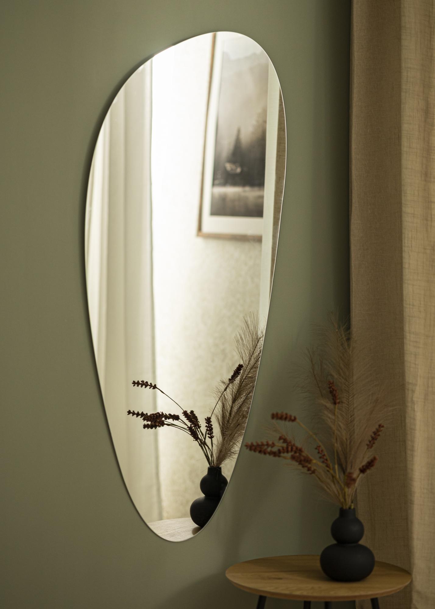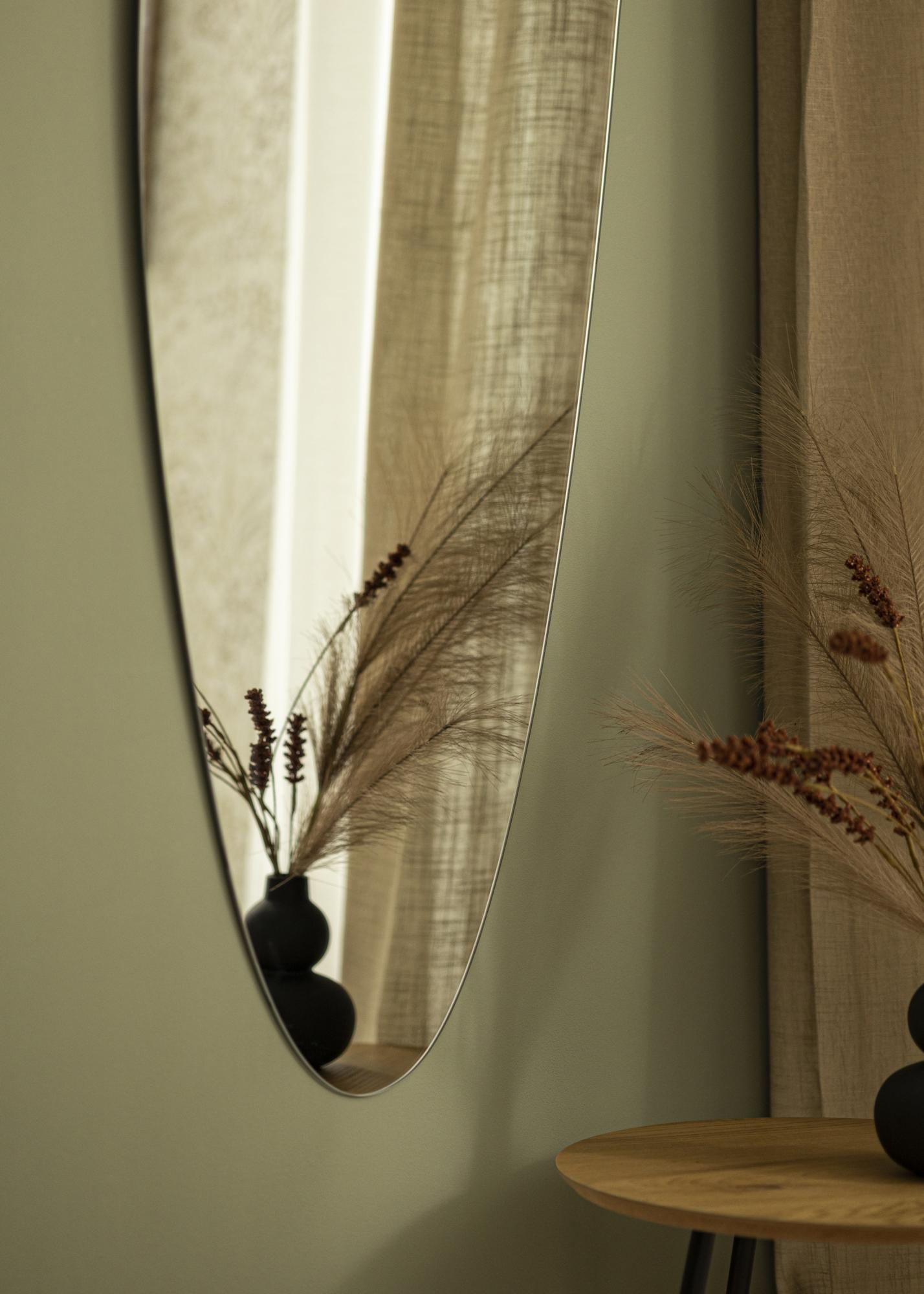 Această oglindă de perete reprezintă minimalismul la cel mai bun nivel - cu un design lipsit de ramă și o formă asimetrică, alungită. Subțirimea sticlei oglinzii, de doar 4 mm, accentuează și mai mult senzația minimalistă și elegantă.