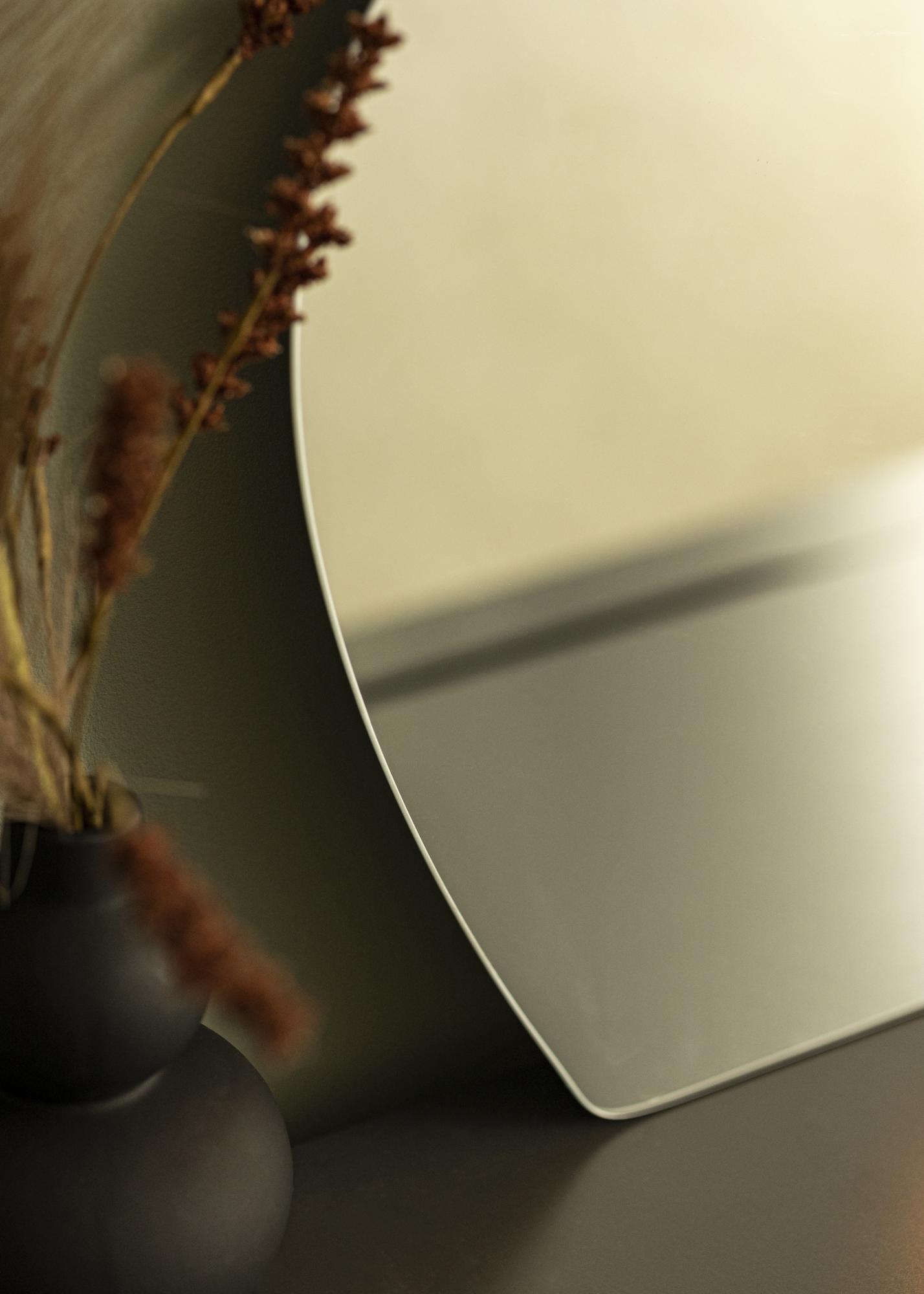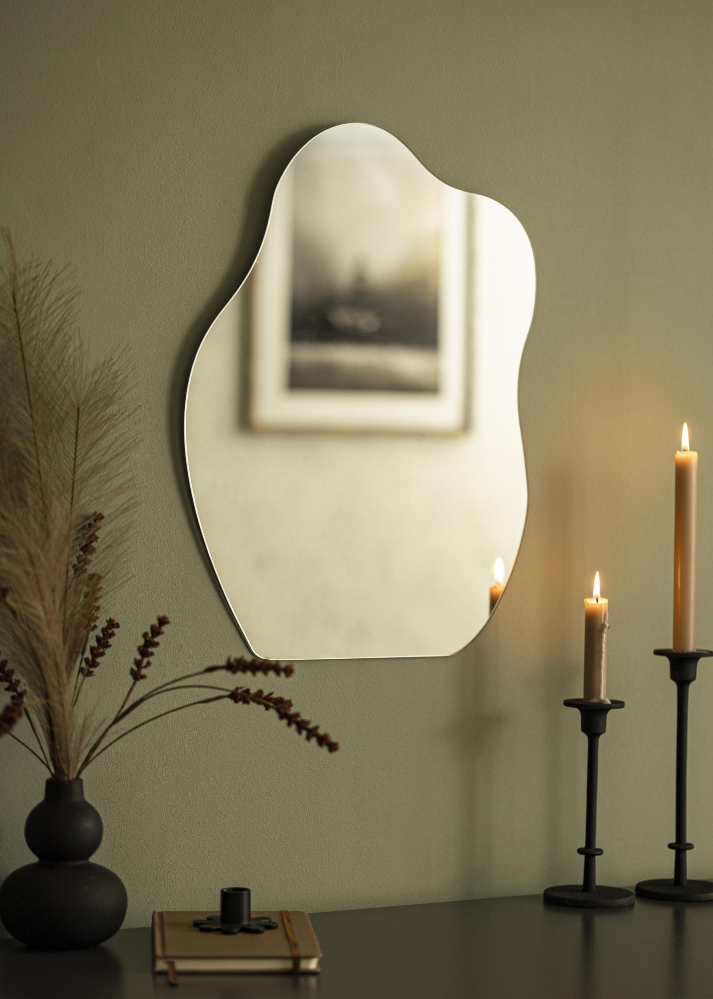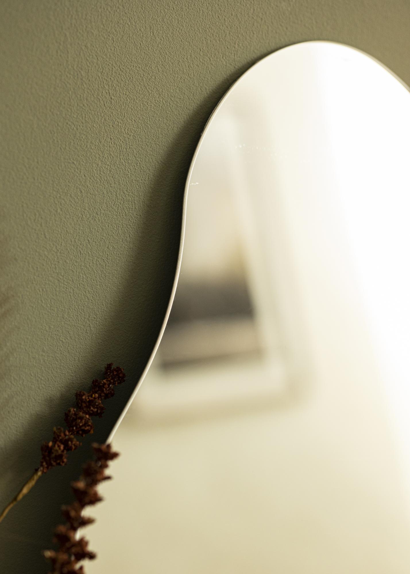 Această oglindă de perete oferă eleganță și joc, cu o formă ondulată care îi conferă un aspect unic. Partea inferioară este dreaptă, ceea ce face oglinda potrivită pentru a fi așezată vertical pe o piesă de mobilier sprijinită de perete. Bineînțeles, poți de asemenea să montezi oglinda pe perete!