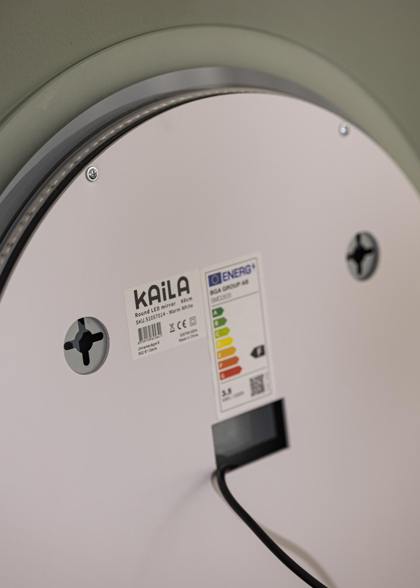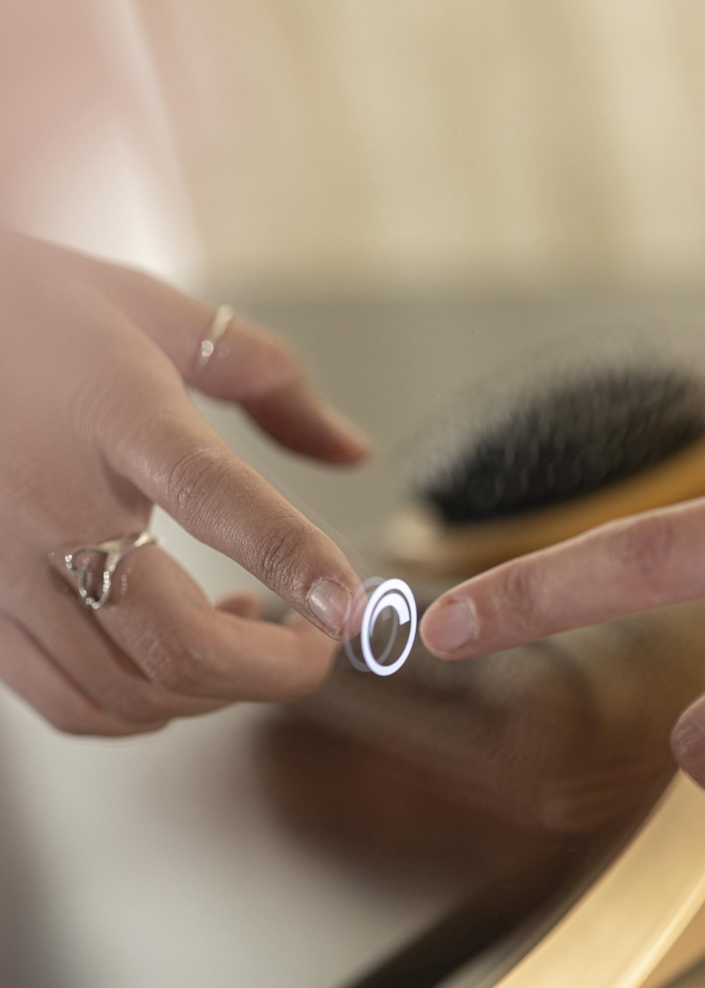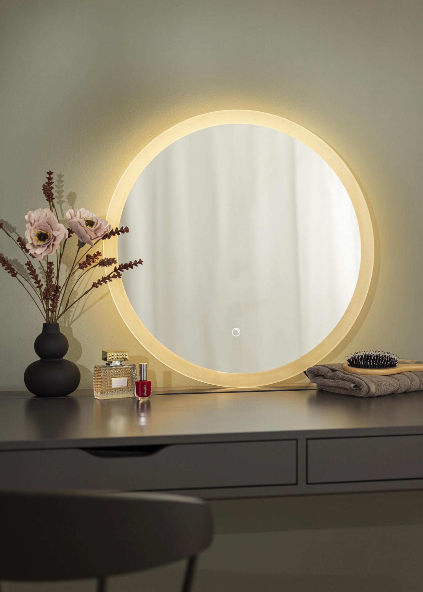 Lumina are un strălucire plăcută pe care o poți regla cu ușurință. Pentru a ajusta intensitatea luminii, menține apăsat butonul de touch de pe marginea inferioară a oglinzii timp de câteva secunde. Oglinda este destinată instalării fixe și ar trebui instalată de un electrician. Pentru ca oglinda să funcționeze corect, trebuie conectată la un întrerupător obișnuit, nu la un întrerupător cu funcția de dimare.
