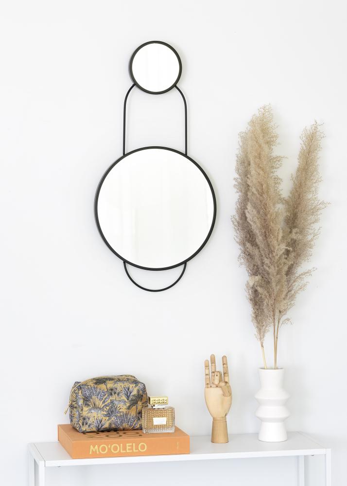 Aceasta este o oglindă de perete grozavă de la KAILA, cu două oglinzi combinate într-un design unic și elegant. Oglinda de perete are o oglindă mică în partea de sus și una mai mare în partea de jos. Oglinda măsoară 35x71 cm și este fabricată din metal. Oglinda vine într-o nuanță elegantă de negru, ceea ce îi conferă un design foarte la modă.