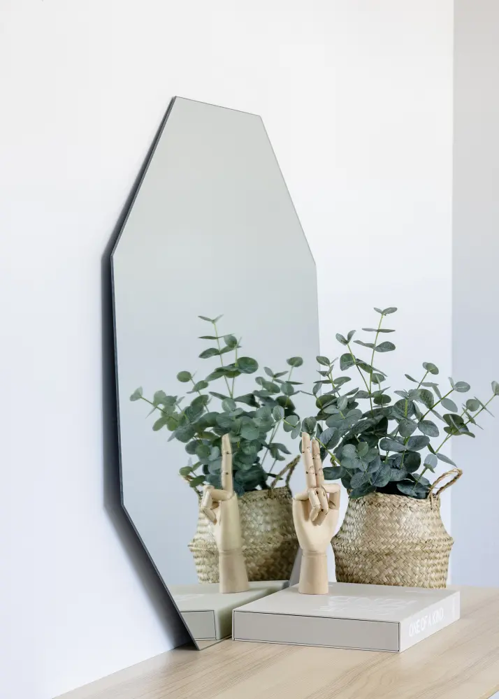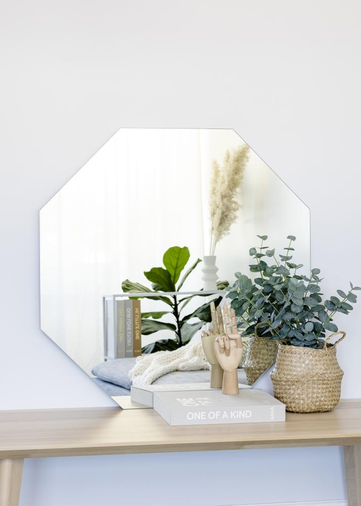 Această oglindă elegantă de la KAILA este perfectă pentru camera de zi, hol sau dormitor. Forma octogonală fără ramă oferă un echilibru perfect între minimalism și glamour. Decorând cu forme și materiale diferite, poți crea o dinamică în locuință, iar această oglindă colțuroasă oferă un contrast frumos cu alte piese de mobilier și detalii de interior. Oglinda are un suport de perete și poate fi agățată ușor pe perete.