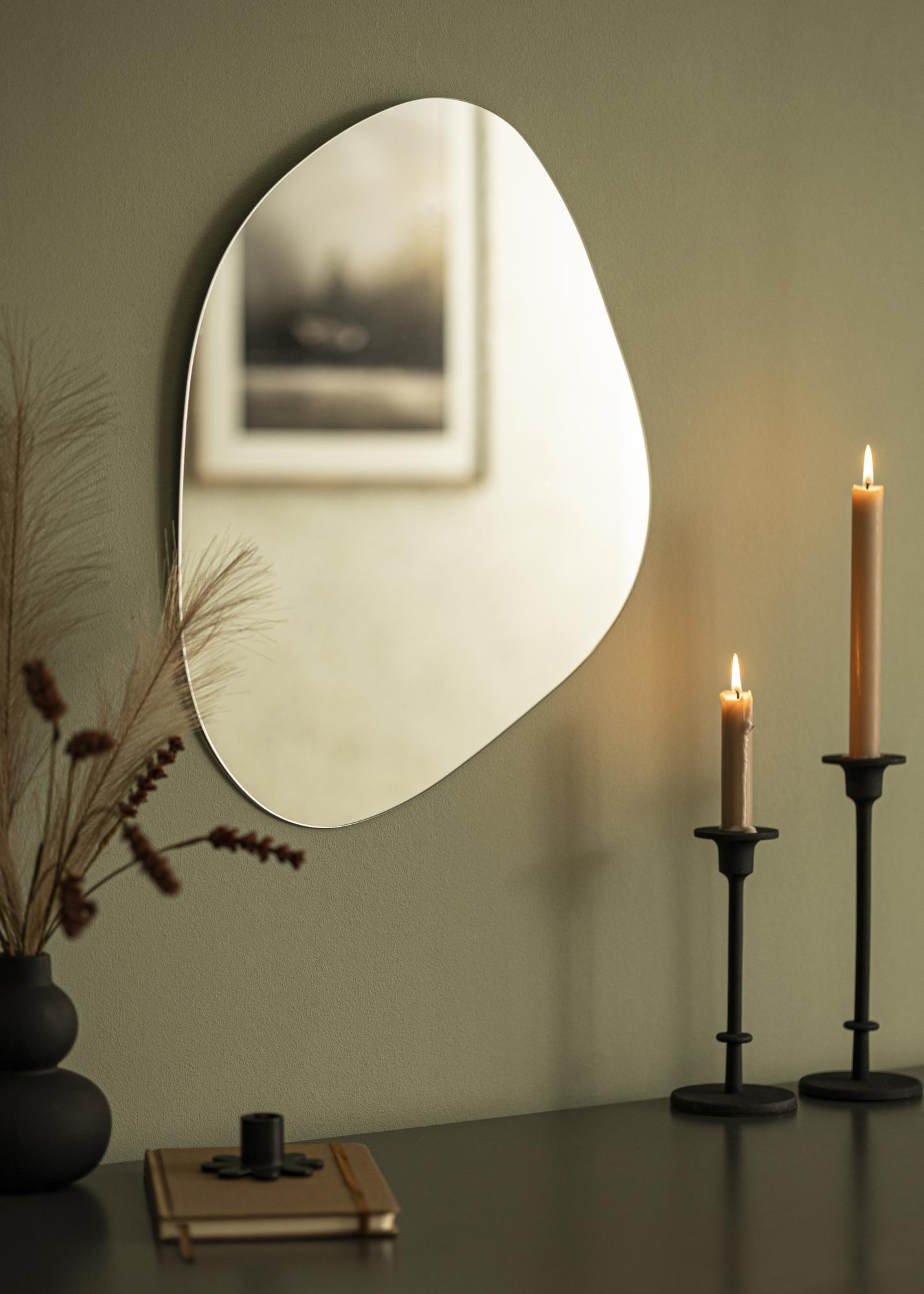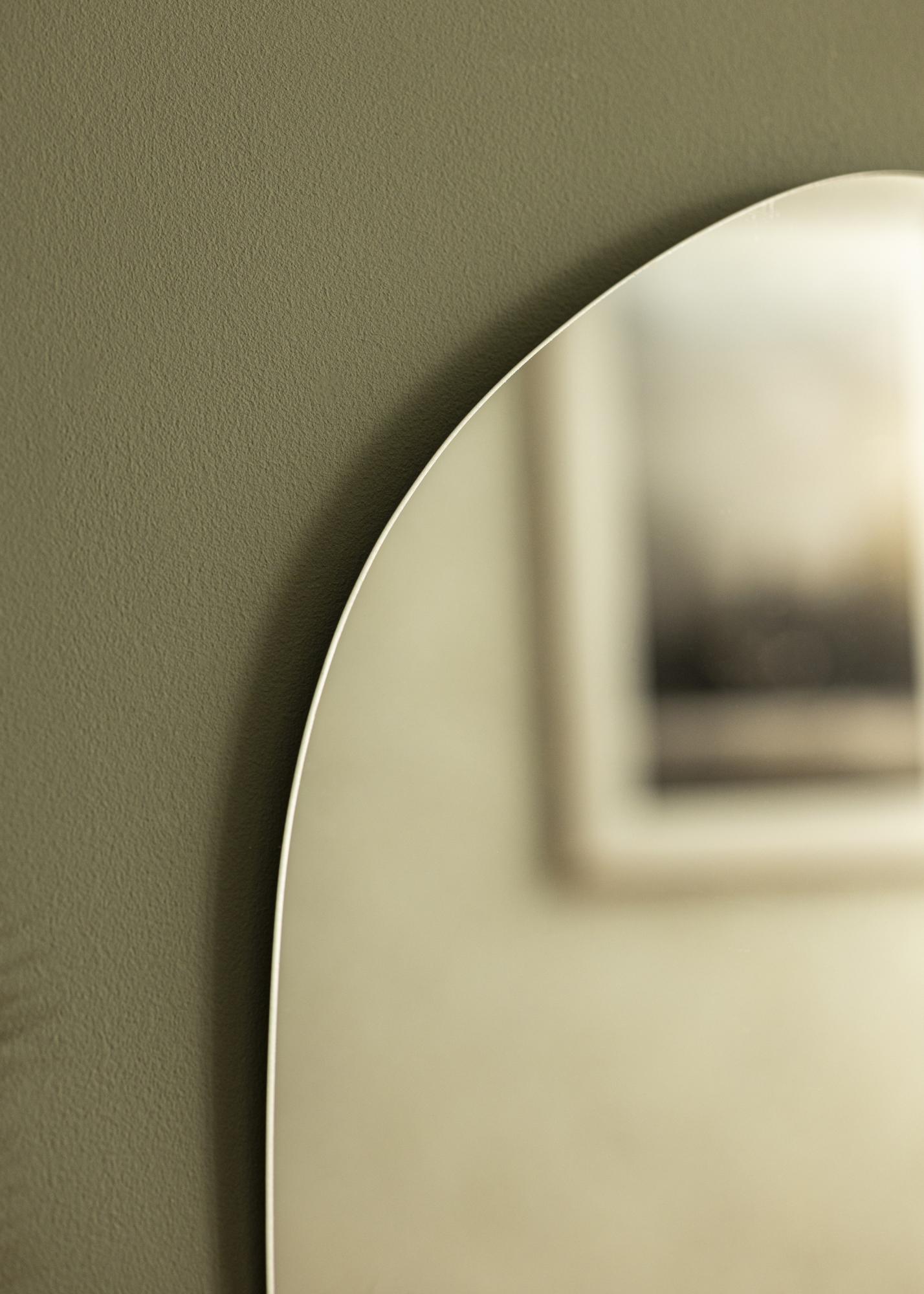 Cauți o oglindă de perete elegantă pentru casa ta? Atunci această oglindă este pentru tine! Oglinda are un design fără ramă și un geam subțire de doar 4 mm și o formă moale, care se îmbină frumos cu liniile drepte din restul decorațiunilor.