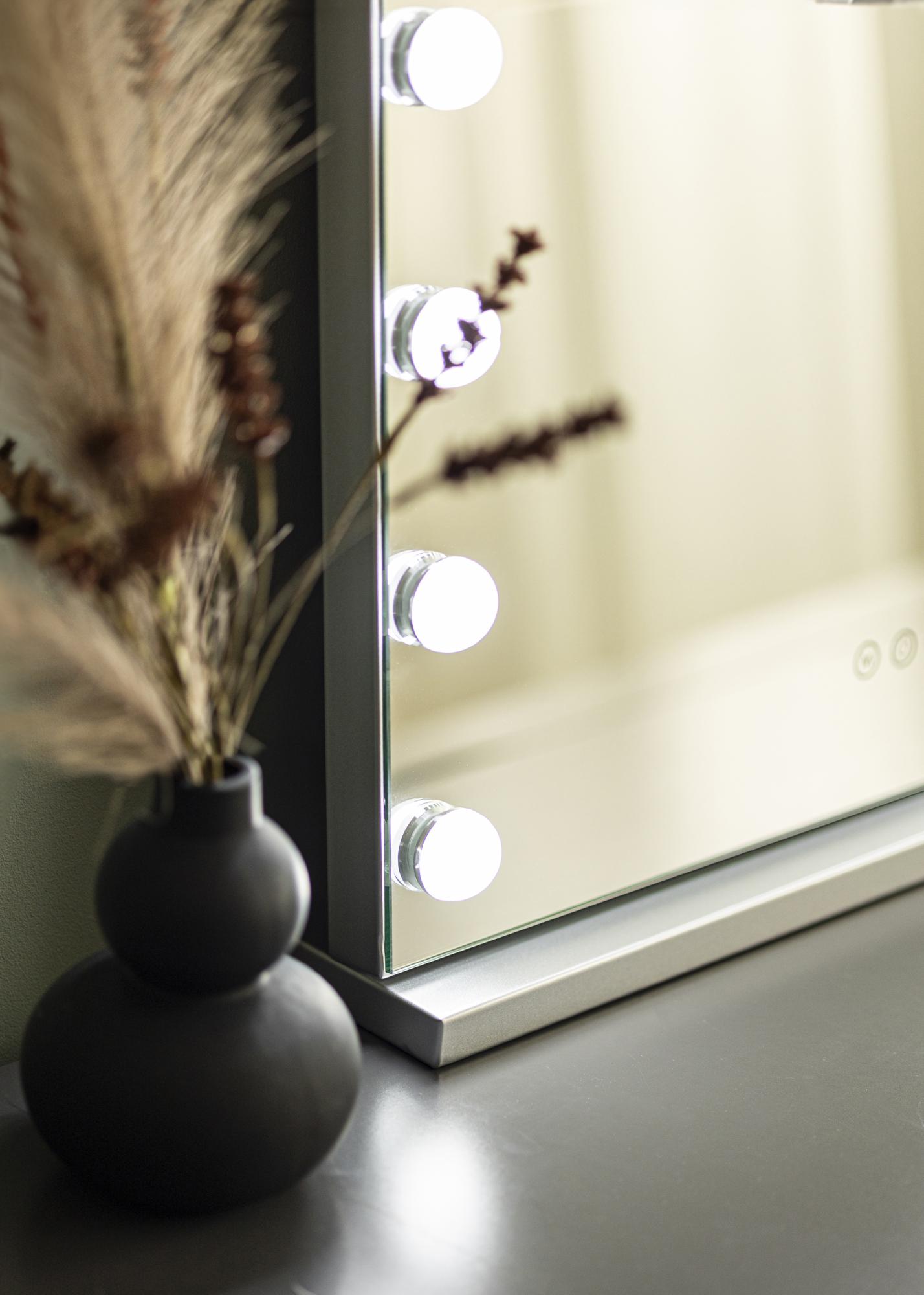 Apariția sofisticată face ca oglinda să se potrivească la fel de bine în colțul de machiaj ca și în camera de zi, și poți alege dacă vrei să așezi oglinda pe o masă sau să o agăți pe perete în poziție orizontală. Suportul argintiu care vine cu oglinda poate fi montat sau demontat.