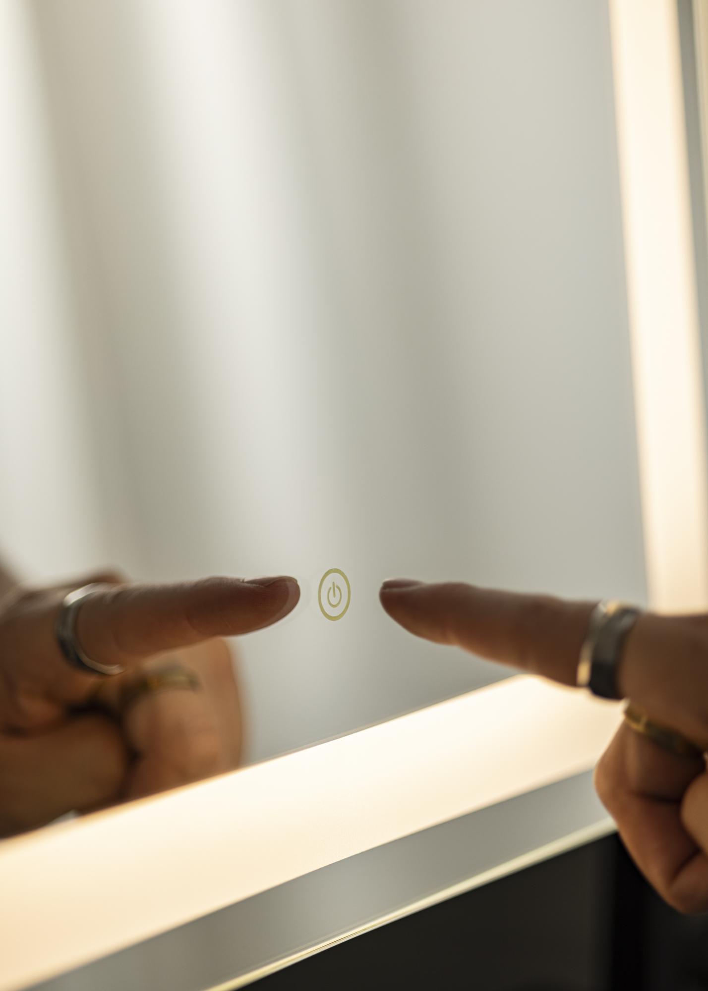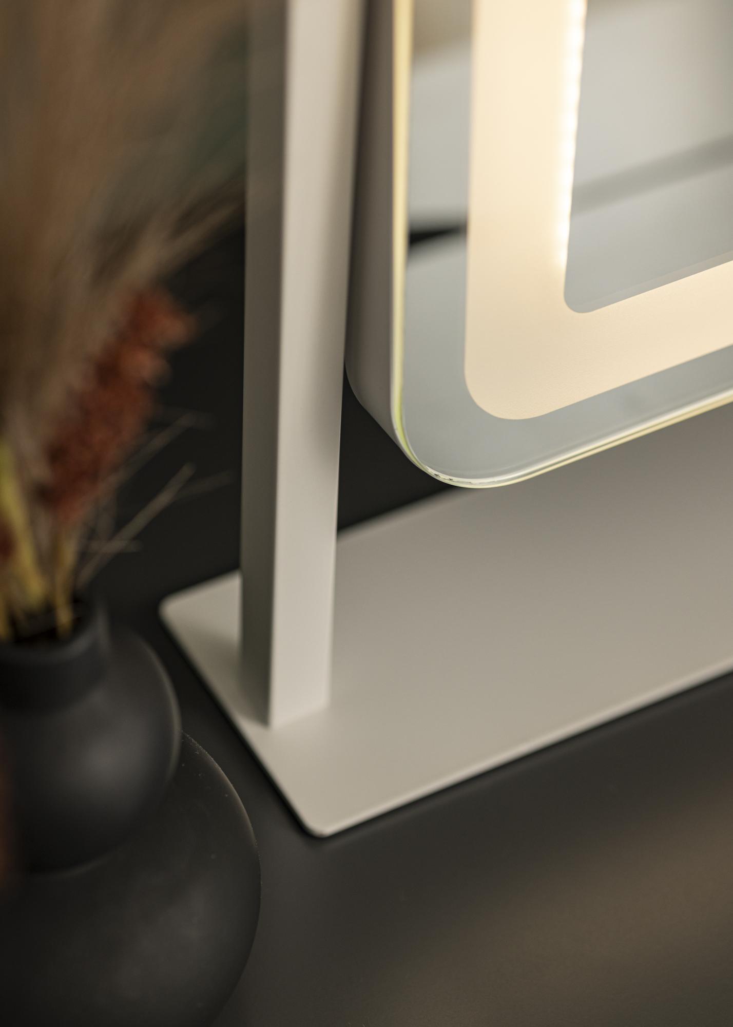 Oglindă pentru machiaj pentru tine, care ești atras de designul la modă! Această oglindă cu design suedez de la KAILA are o nuanță elegantă albă și o margine mată cu iluminare LED integrată în jurul sticlei oglinzii. Iluminarea LED oferă o lumină caldă albă de 3000K, perfectă pentru aplicarea machiajului. Pornești ușor iluminarea prin apăsarea butonului de atingere de pe ecran și ajustezi luminozitatea ținând apăsat butonul câteva secunde. Oglinda pentru machiaj măsoară 45x60 cm și poate fi înclinată, astfel încât să te poți oglindi din diferite unghiuri!