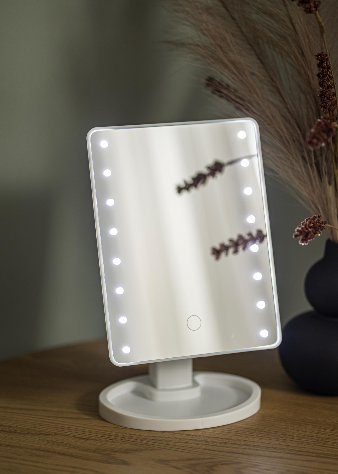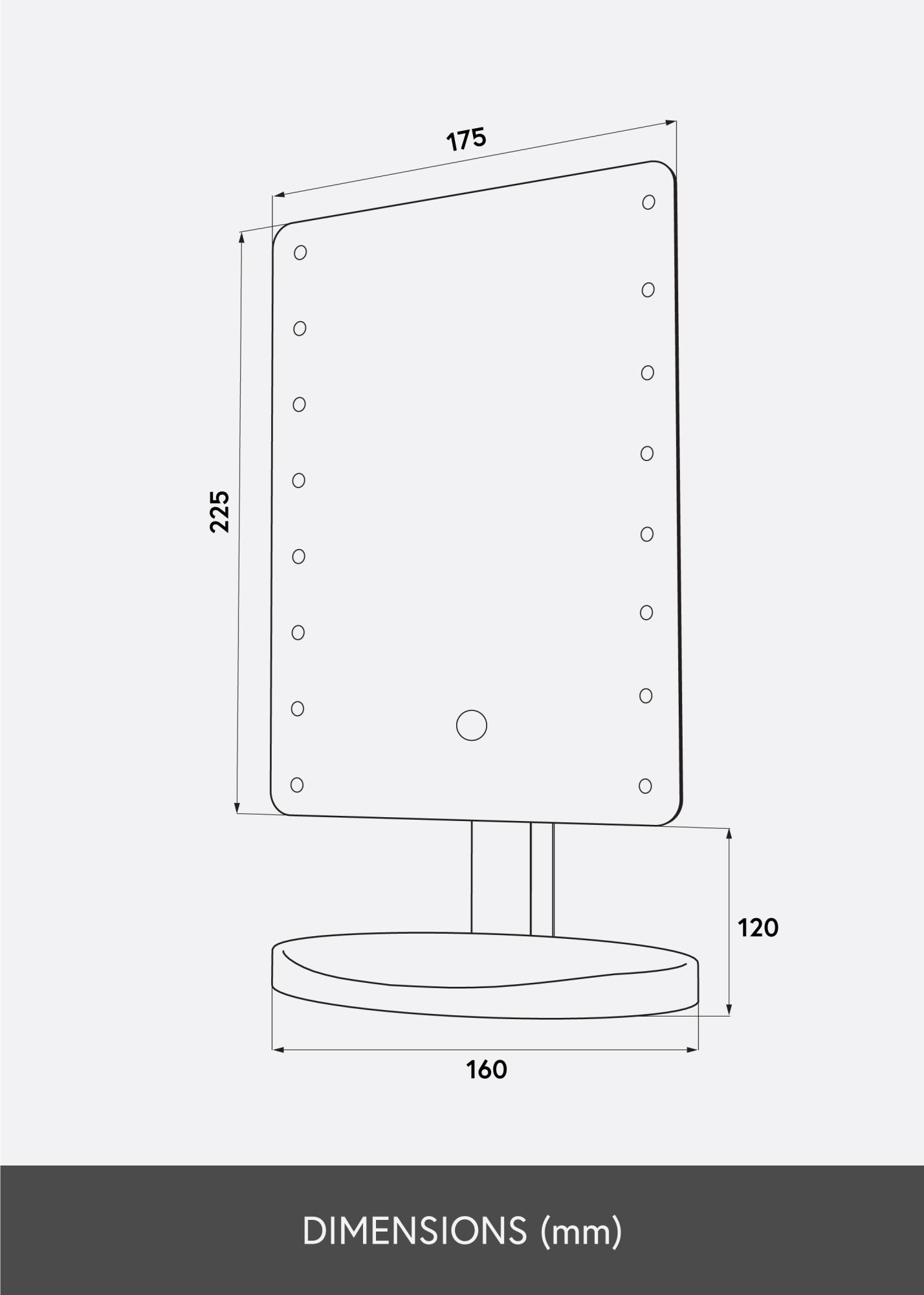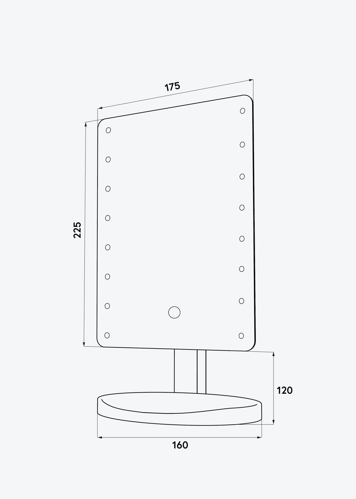 Aceasta este o oglindă de machiaj elegantă, perfectă de utilizat atât acasă, cât și când ești în călătorie. Este foarte portabilă, cu un material din compozit ușor și un format mai mic cu o suprafață de oglindă de 17,5x22,5 cm. Oglinda poate fi înclinată și rotită în poziție orizontală.