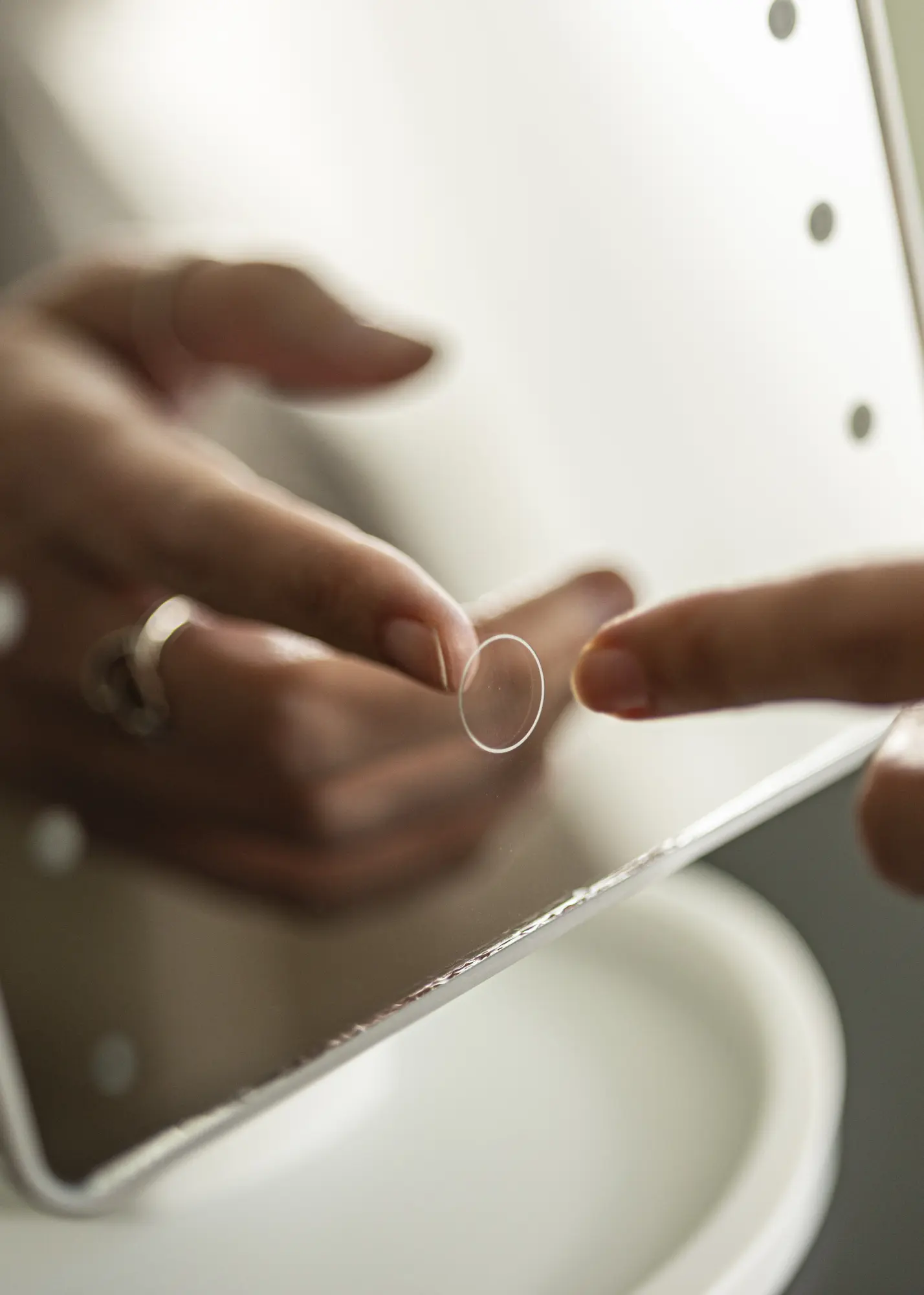 Oglinda are iluminare LED. Două avantaje ale iluminării LED sunt că este o sursă de lumină eficientă din punct de vedere energetic, cu o durată lungă de viață. Oglinda se aprinde cu butonul de pornit/oprit de pe partea din spate a oglinzii. Apoi, ai posibilitatea de a regla intensitatea luminii cum dorești. Acest lucru se realizează simplu prin apăsarea și menținerea apăsată a butonului tactil de pe partea din față a oglinzii pentru câteva secunde.