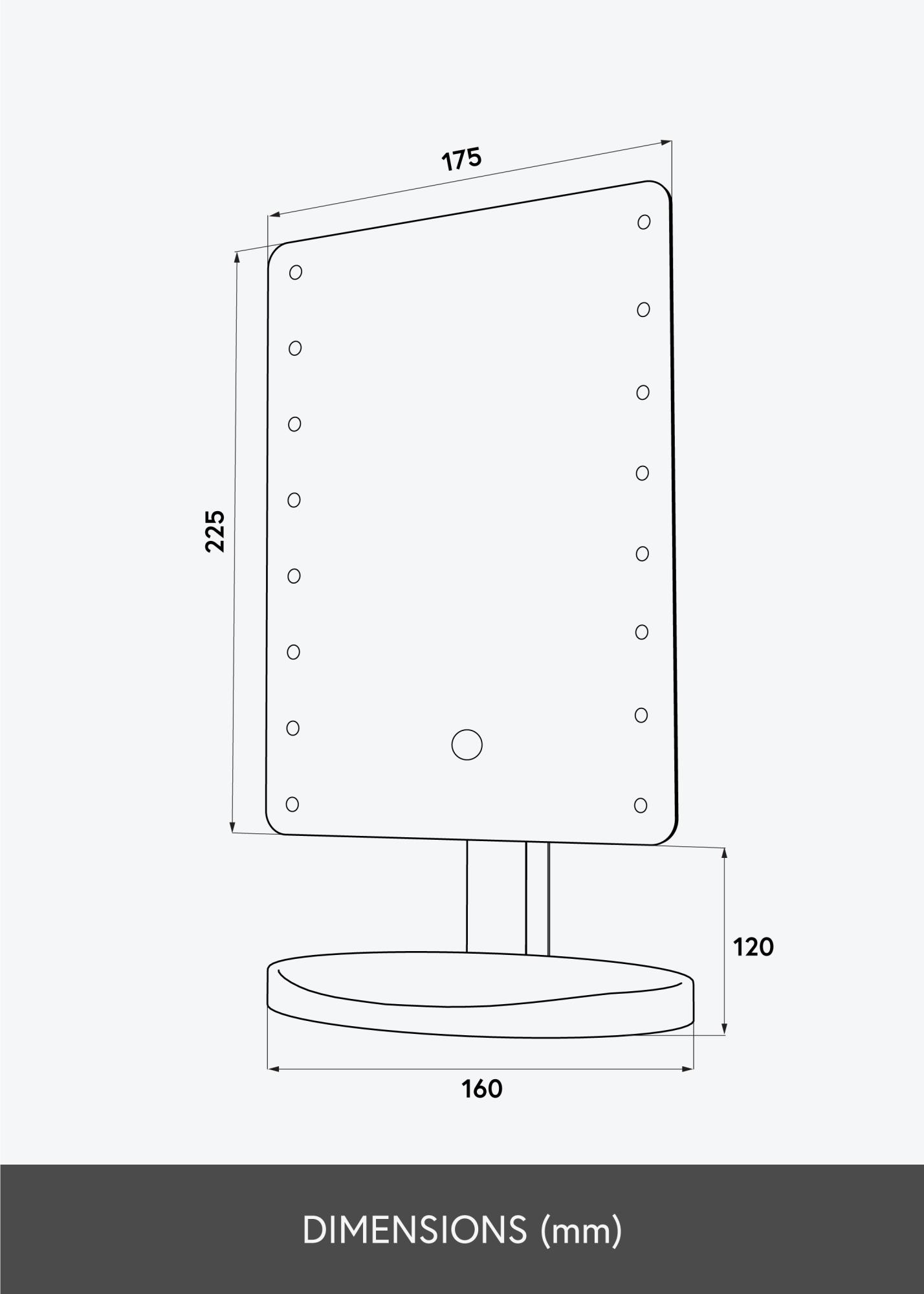 Oglinda de machiaj are un design inteligent care îți permite să rotești și să înclini suprafața oglinzii. Oglinda funcționează cu 4 baterii AA (neincluse)