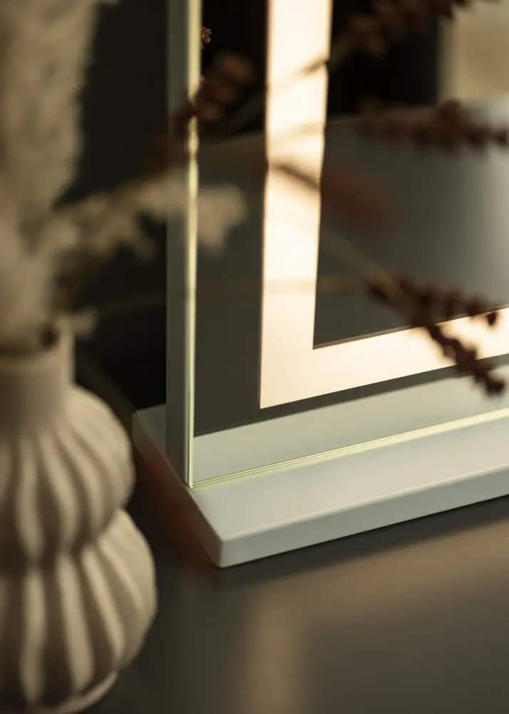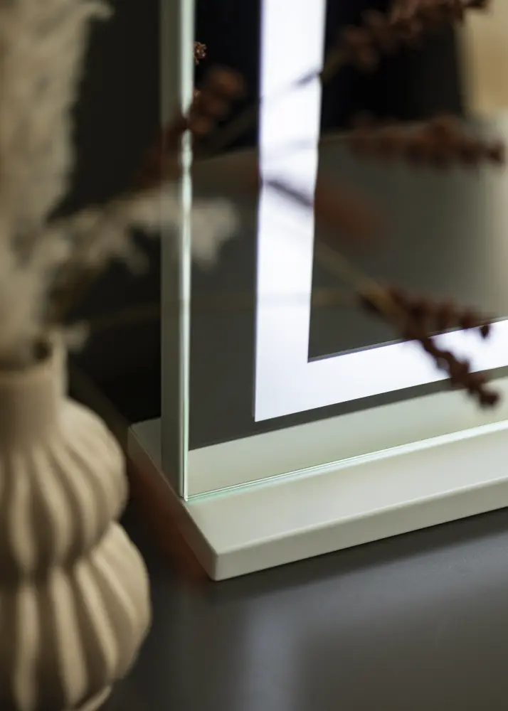 Această oglindă de machiaj cu lumină de la marca suedeză KAILA reprezintă maximul în designul suedez clasic, combinat cu funcționalitate și eleganță modernă. Cu forma sa rectangulară elegantă și iluminare cu LED înrămată, această oglindă creează condiții perfecte de lumină pentru aplicarea machiajului și reflecții detaliate. Culoarea albă neutră o face ușor de asortat cu diferite stiluri de decor, iar designul său inteligent permite o plasare ușoară pe mese și comode pentru o utilizare optimă.