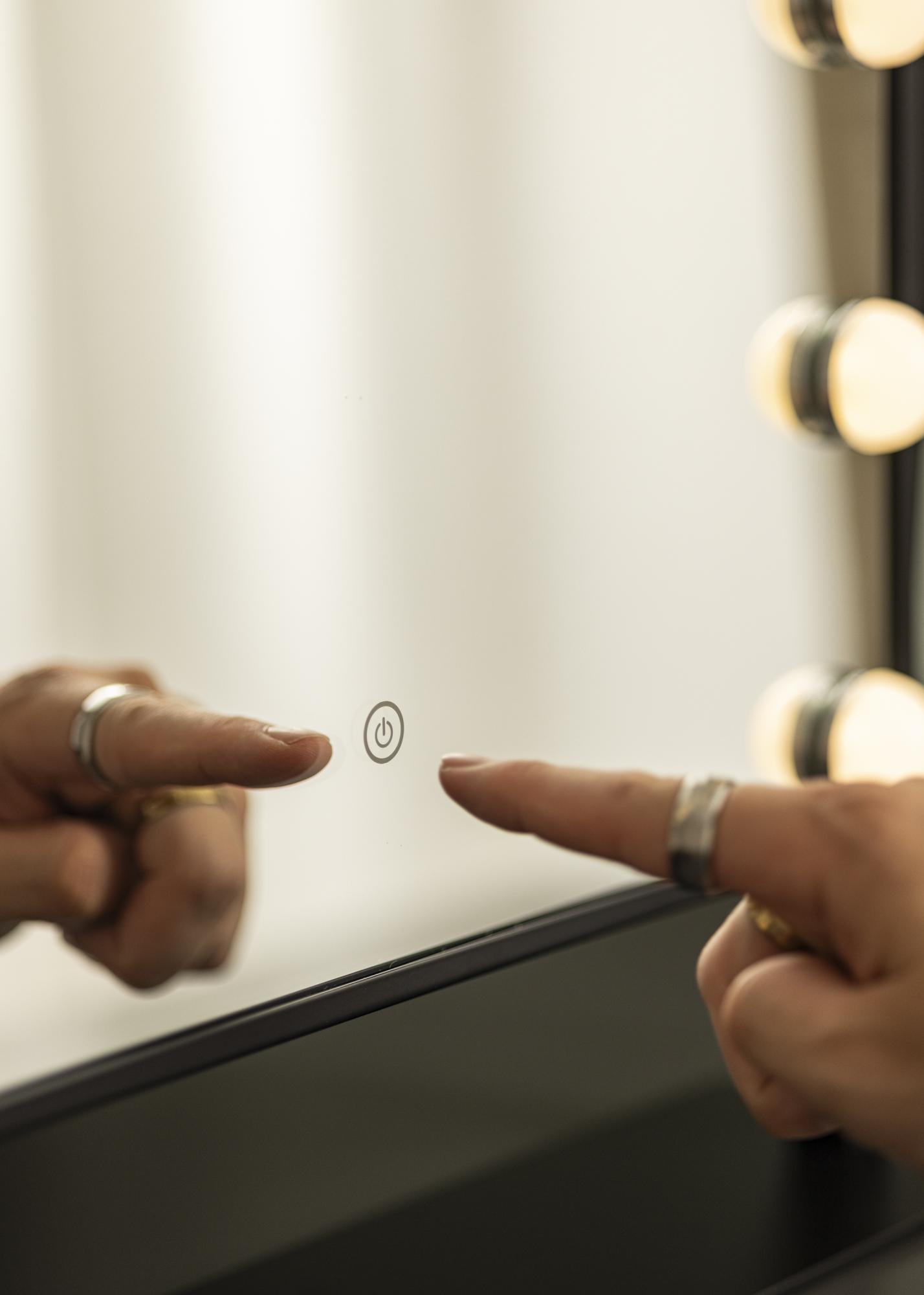 Această oglindă elegantă pentru machiaj cu 15 becuri LED și suprafață mare de oglindă este oglinda perfectă pentru aplicarea machiajului! Oglinda stil Hollywood are o nuanță neagră, iar lămpile LED încadrează frumos suprafața oglinzii. Oglinda pentru machiaj poate fi înclinată astfel încât să poți să te oglindești din diferite unghiuri și să reușești cu ușurință machiajul!