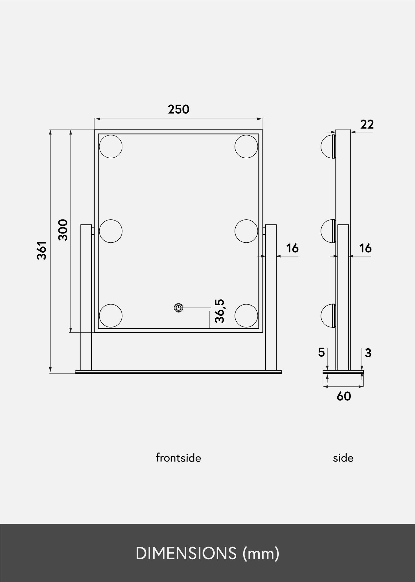 Aceasta este o oglindă de machiaj cu adevărat luxoasă, cu șase becuri LED decorative și reglabilă, într-o nuanță de negru la modă. Iluminarea oferă o lumină albă caldă la 3000K și se aprinde prin apăsarea butonului tactil. Reglați intensitatea lămpilor menținând apăsat butonul câteva secunde. LED-ul este o sursă de lumină care consumă mai puțină energie, are o durată de viață mai lungă și oferă o lumină mai naturală și uniformă. Oglinda de machiaj poate fi înclinată astfel încât să poți aplica machiajul cu mai multă precizie. Pe lângă numeroasele sale funcții, această oglindă de machiaj are un adevărat sentiment de la Hollywood și devine un detaliu elegant în locuință!