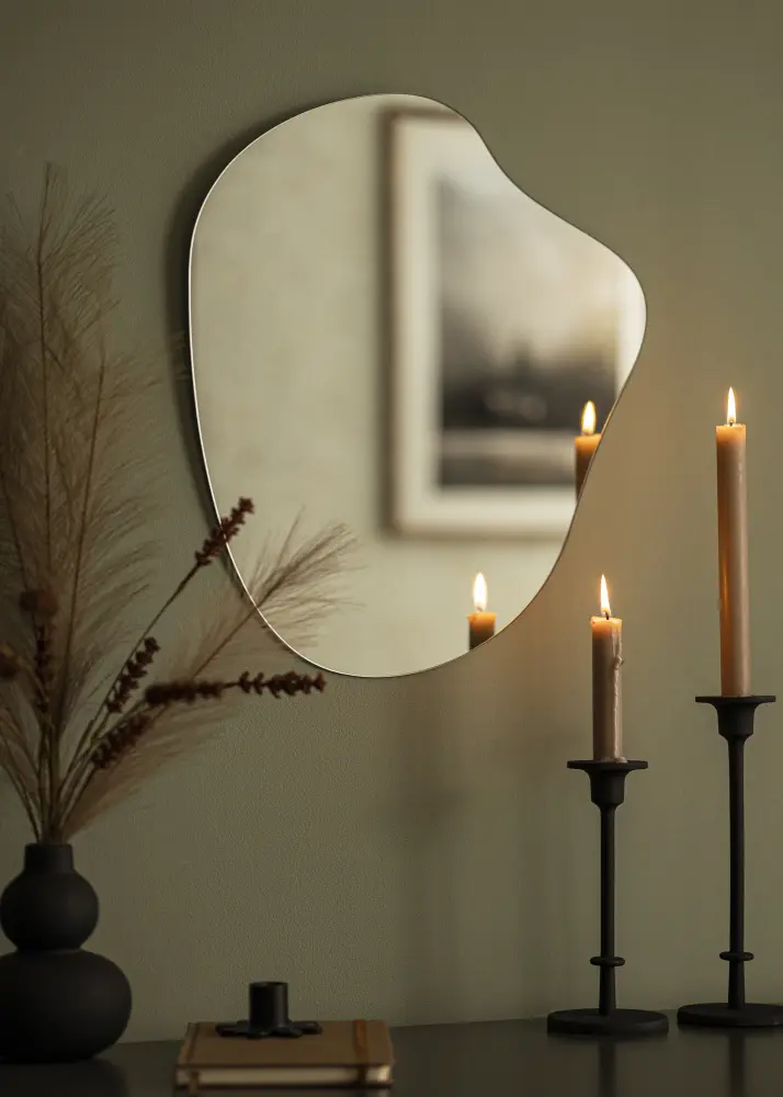 Lăsați această oglindă de perete la modă să devină un detaliu interior captivant care reflectă frumos lumina de la ferestre și lămpi. Forma unică și lipsa ramei oferă oglinzii aspectul său caracteristic, care este atât modern, cât și minimalist.
