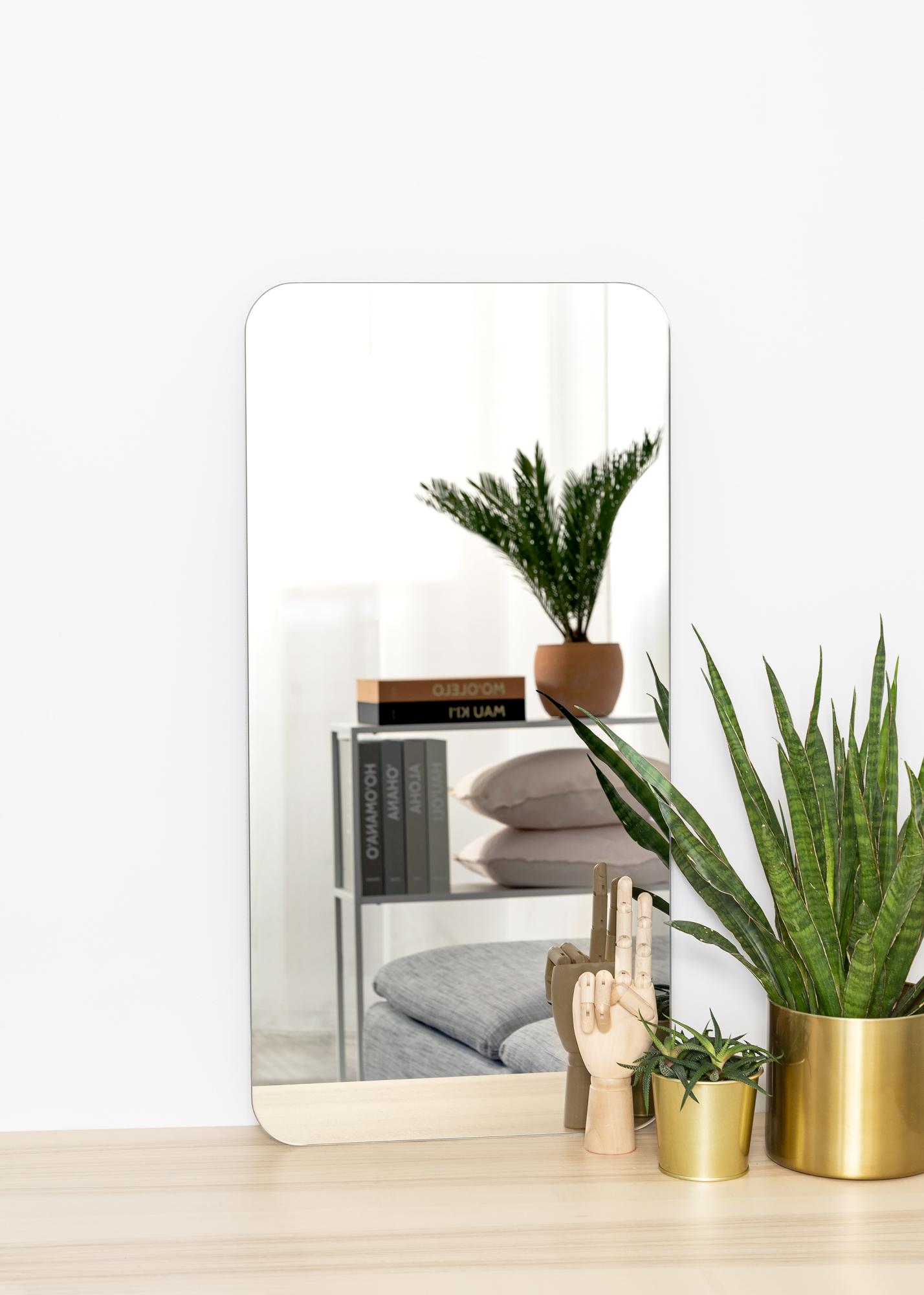 Aceasta este o oglindă dreptunghiulară cu ceva în plus: colțuri rotunjite care aduc moliciune și eleganță întregului. Oglinda este, de asemenea, foarte subțire și nu are ramă, ceea ce îi conferă o senzație minimalistă.