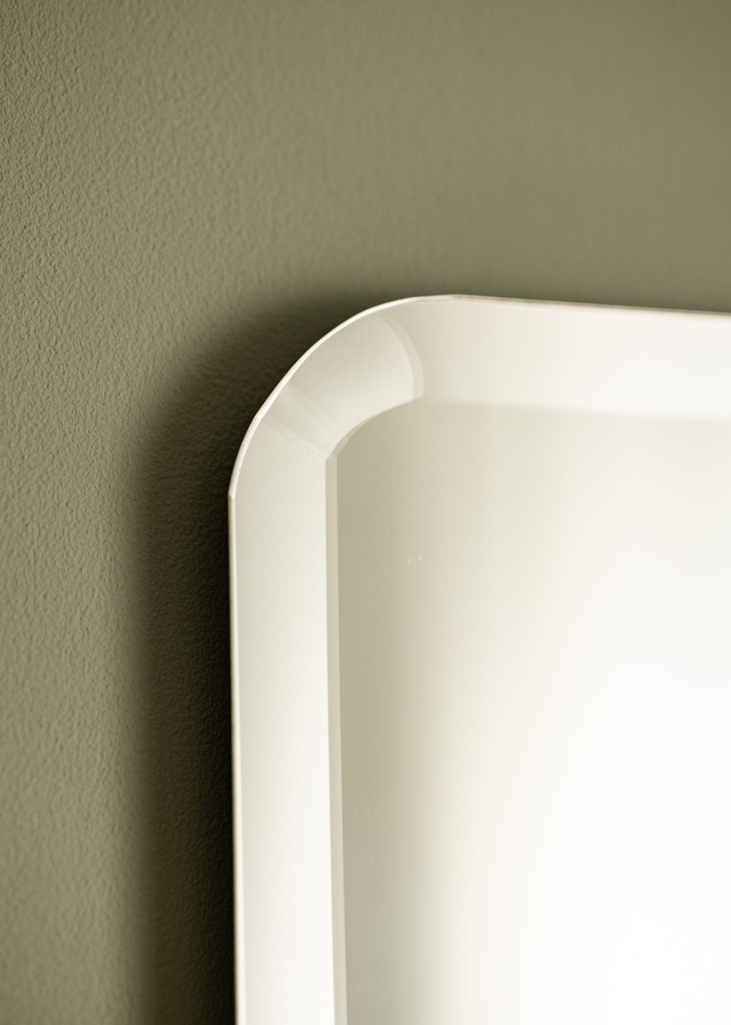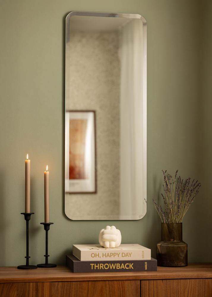 Aceasta este o oglindă dreptunghiulară de la KAILA, cu colțuri rotunjite decorative. Forma sa delicată oferă o expresie elegantă, care este și mai accentuată deoarece oglinda nu are cadru. Oglinda are dimensiunile de 40x100 cm și are o margine frumos șlefuită.