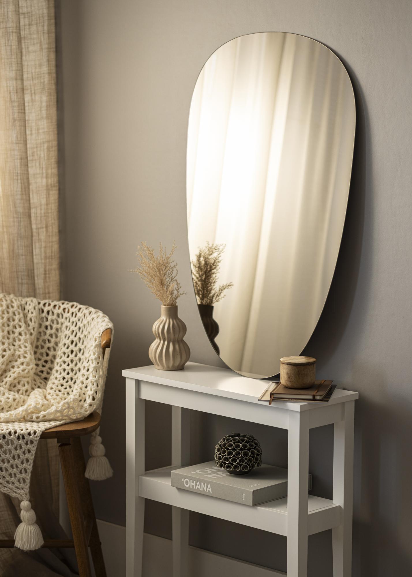 Aceasta este o oglindă asimetrică cu forme moi și un aspect foarte elegant și la modă. Sticla oglinzii este nuanțată într-o nuanță stilată de bronz închis, ceea ce o face un detaliu interior impresionant care se potrivește ușor cu multe scheme de culori diferite pentru interior. Oglinda este, de asemenea, foarte subțire și nu are cadru, ceea ce accentuează și mai mult senzația stilată și la modă. Plasează oglinda în hol, sufragerie, dormitor – sau în orice cameră unde dorești să adaugi funcționalitate și design suedez elegant!