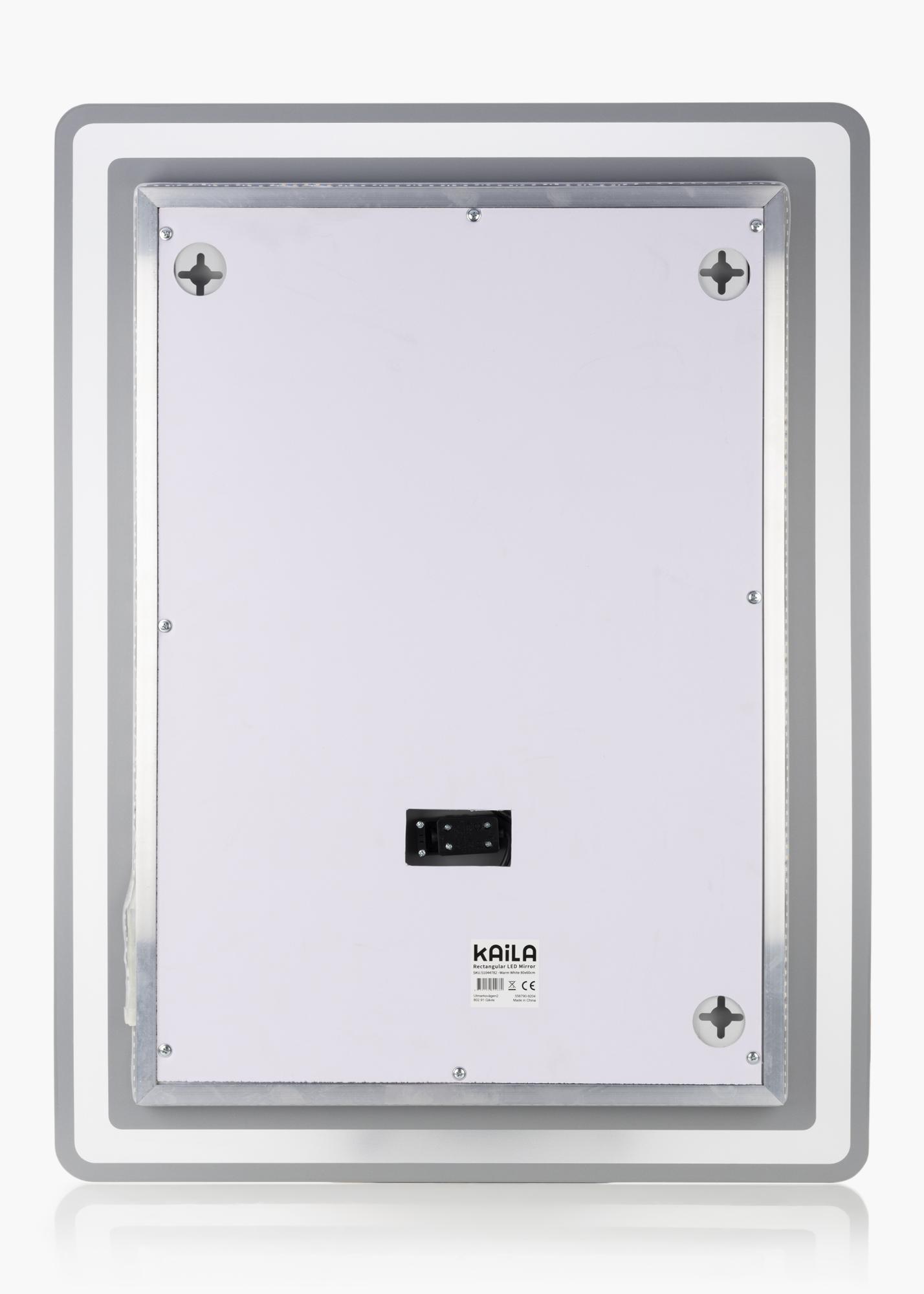 Acesta este o oglindă elegantă de baie de la brandul suedez KAILA. Oglinda are margini mai moi și în interior are o iluminare LED integrată care încadrează cu stil sticla oglinzii. Iluminarea LED integrată este reglabilă și oferă o lumină albă caldă naturală la 3000K. Iluminarea se ajustează ușor prin menținerea degetului pe butonul tactil timp de câteva secunde, astfel încât lumina să fie redusă la intensitatea dorită. Oglinda își amintește ultima setare a luminii data viitoare când o porniți.