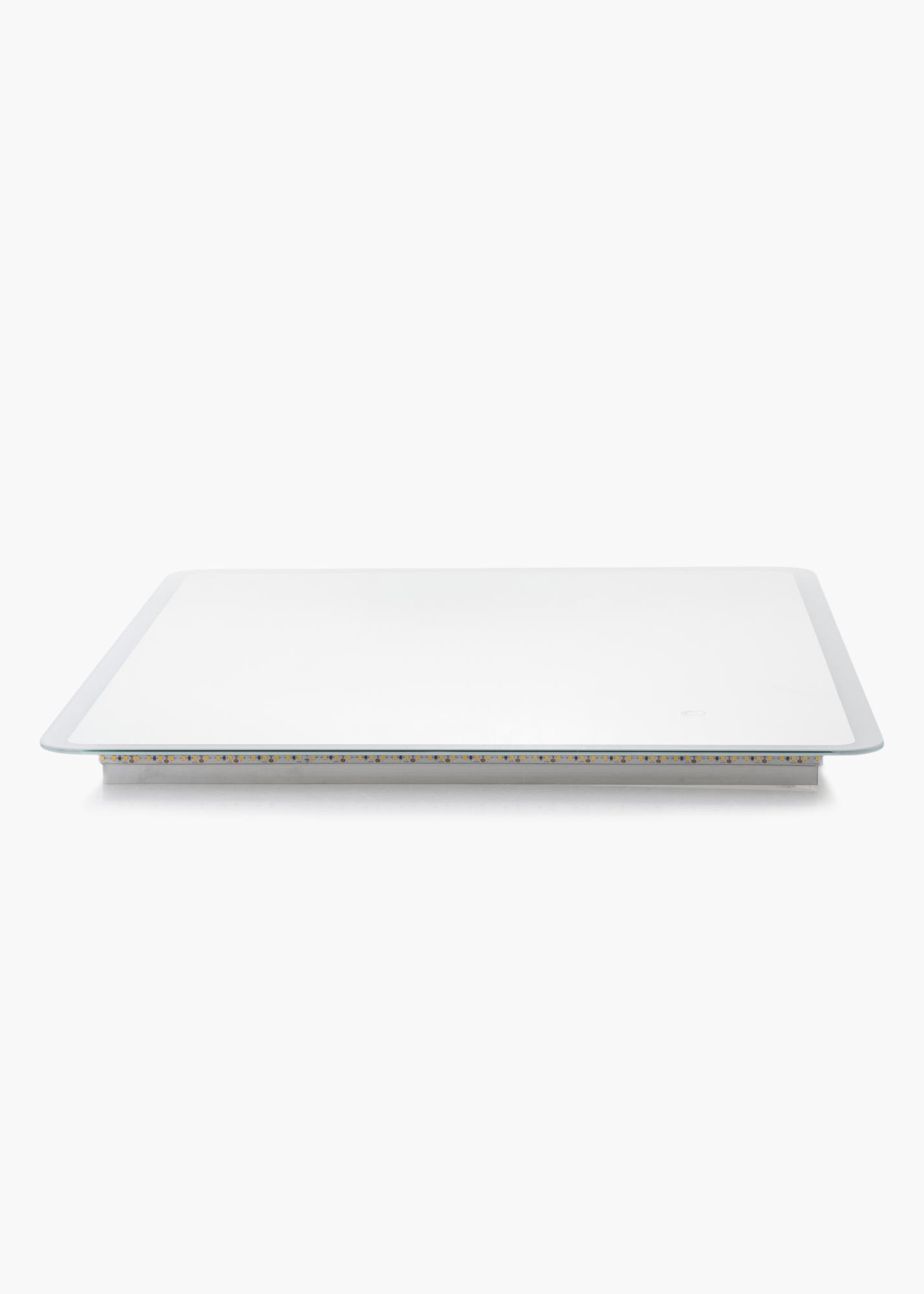 Această oglindă de baie cu design atemporal are o formă dreptunghiulară și colțuri rotunjite. De-a lungul marginii există o iluminare LED integrată care încadră frumos oglinda. Iluminarea LED luminează în spatele oglinzii și oferă o lumină plăcută în față la 3000K, care este o nuanță alb caldă. Iluminarea este reglabilă și puteți ajusta cu ușurință intensitatea ținând apăsat butonul tactil de pe ecran pentru câteva secunde. Oglinda își amintește ultima setare a luminii data viitoare când aprindeți iluminarea. Oglinda este aprobată pentru baie. Oglinda de baie este destinată instalării fixe și se conectează la un întrerupător. Pentru ca oglinda să funcționeze corect, aceasta trebuie conectată la un întrerupător de lumină obișnuit, nu la un întrerupător dimmer.