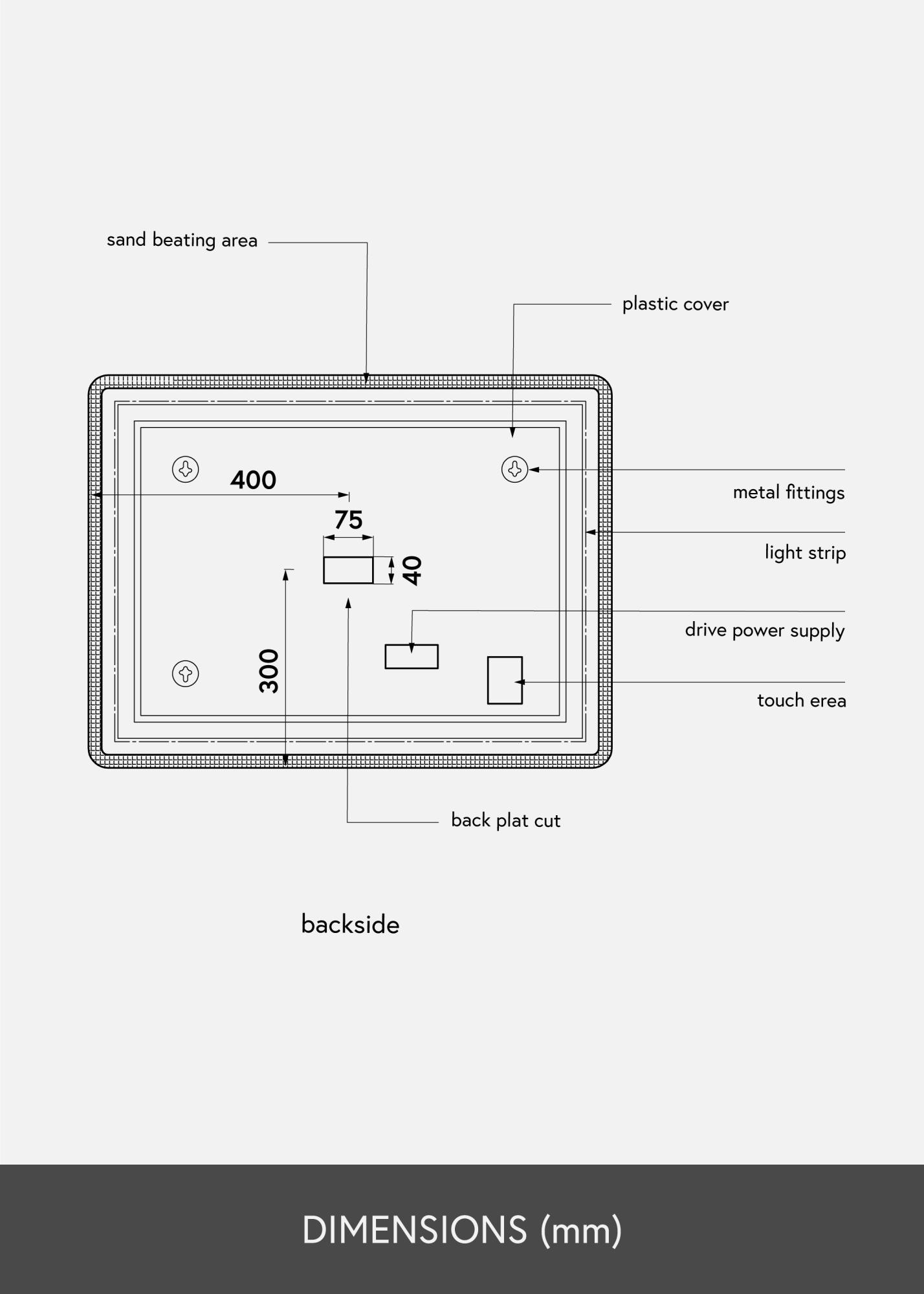 Oglinda elegantă de baie are doar 3cm adâncime și măsoară 60x80 cm. Oglinda de baie are suporturi de perete și poate fi montată atât orizontal cât și vertical. Iluminarea LED reglabilă și marginile moi fac ca oglinda să aducă o senzație caldă și moale în camera în care este plasată.
