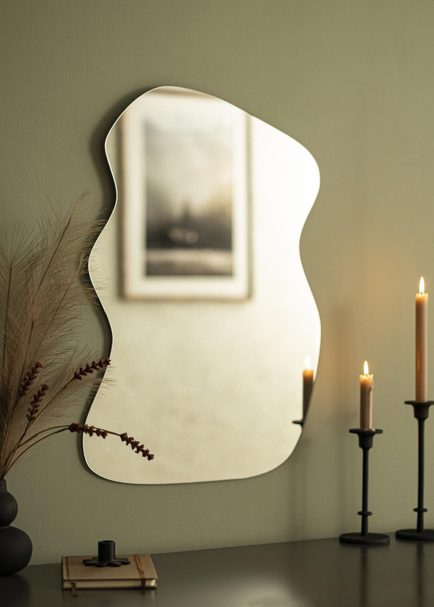 Aceasta este o oglindă de perete excelentă pentru tine, dacă cauți combinația perfectă de eleganță clasică și modernitate. Forma ușor ondulată oferă oglinzii un aspect unic și trendy, în timp ce lipsa cadrului adaugă un plus de eleganță.