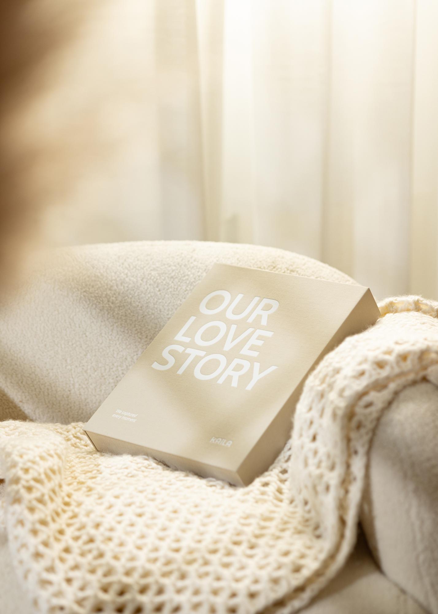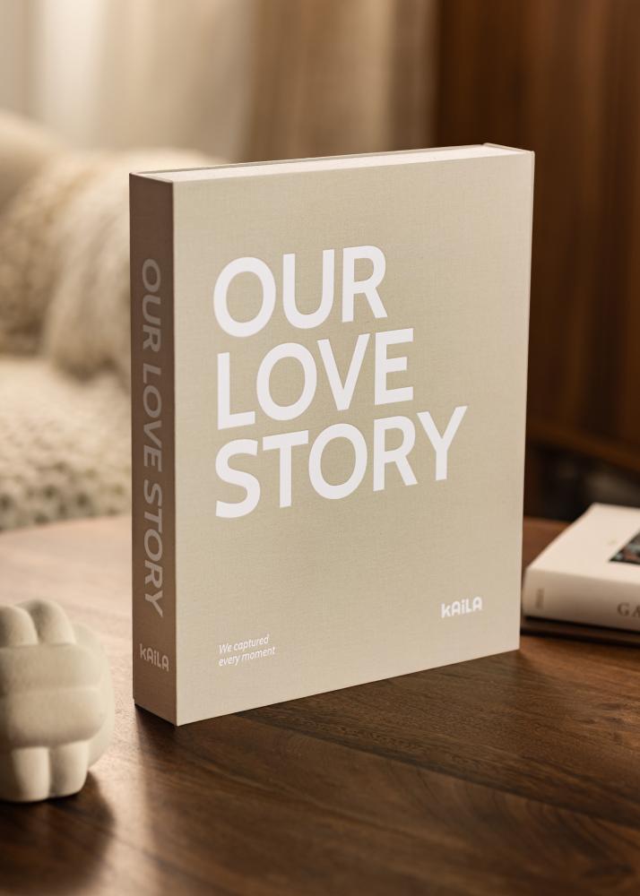 Acesta este un album foto și o carte de masă Coffee table combinate într-unul, care devine în același timp un detaliu decorativ în casa ta. Albumul foto este proiectat ca o cutie îmbrăcată în material textil și are o nuanță elegantă de gri. Pe partea din față a albumului foto este tipărit titlul „OUR LOVE STORY” în litere mari albe și subtitlul „We captured every moment”, care face acest album perfect pentru a păstra amintiri prețioase din relațiile tale cele mai dragi sau pentru a-l oferi ca un cadou frumos. De ce să nu păstrezi fotografiile frumoase de nuntă în acest album foto elegant? Pe interiorul albumului foto găsești un model discret tipărit și un inel de legătură cu 30 (60 de pagini) de foi negre unde îți lipești singur fotografiile, oferindu-ți posibilitatea de a fi creativ.