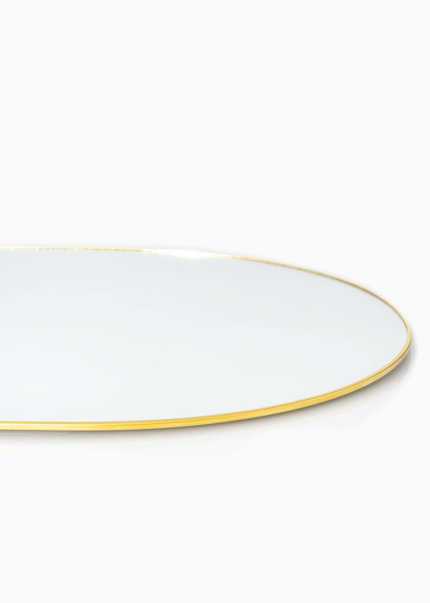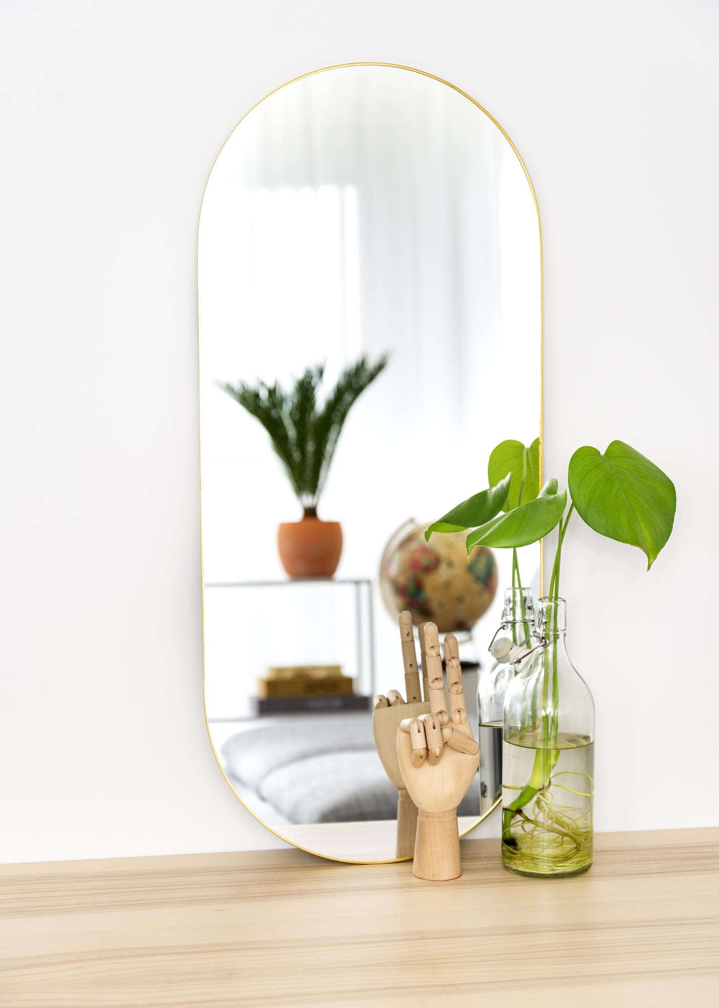 Aceasta este o oglindă de perete foarte decorativă în design scandinav simplu de la KAILA. Forma ovală oferă oglinzii un aspect moale și elegant, care este întărit în continuare de rama subțire din metal în alamă. Este o oglindă care pare atât modernă, cât și clasică în același timp, ceea ce o face să se potrivească în majoritatea caselor și stilurilor de amenajare interioară.