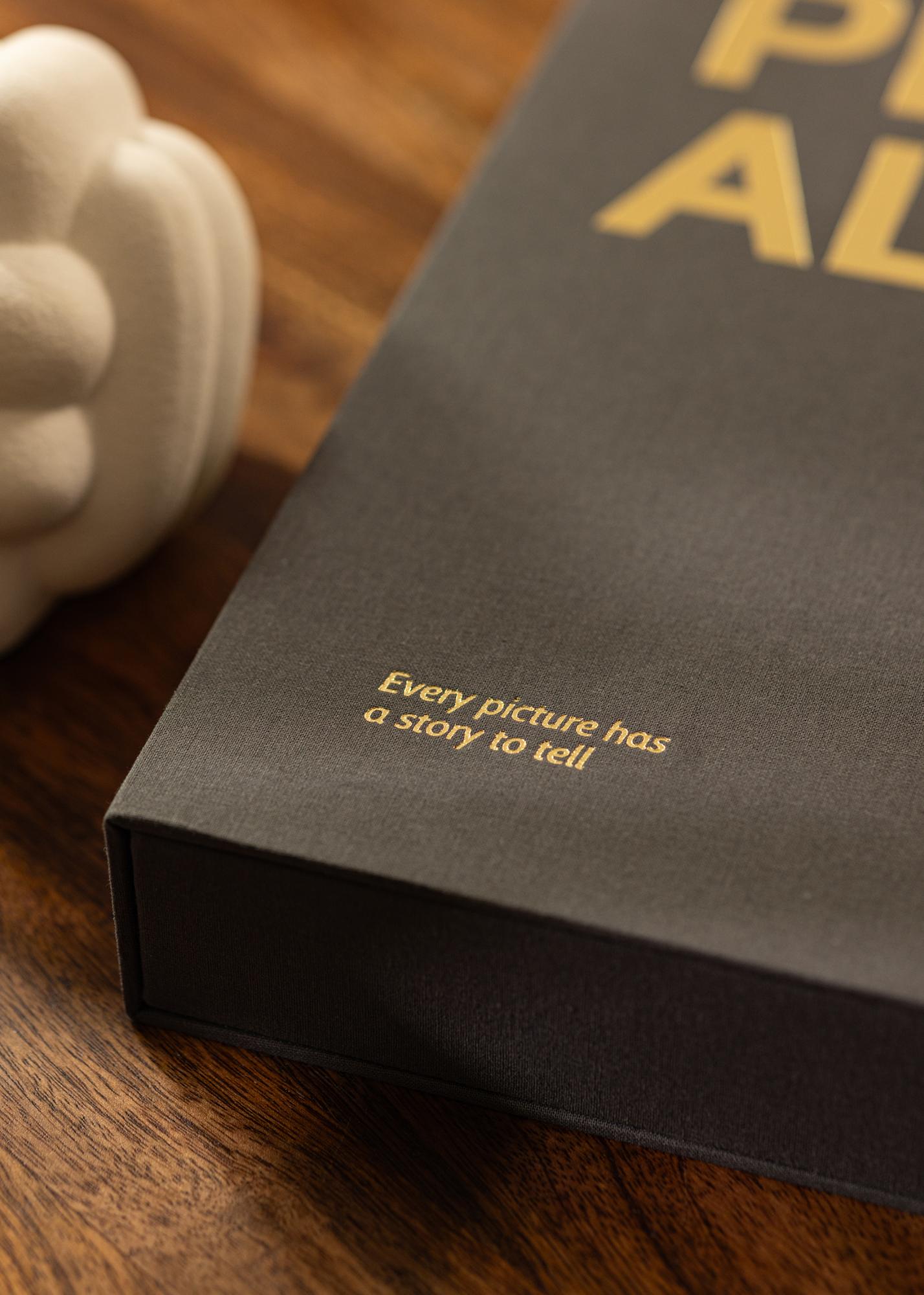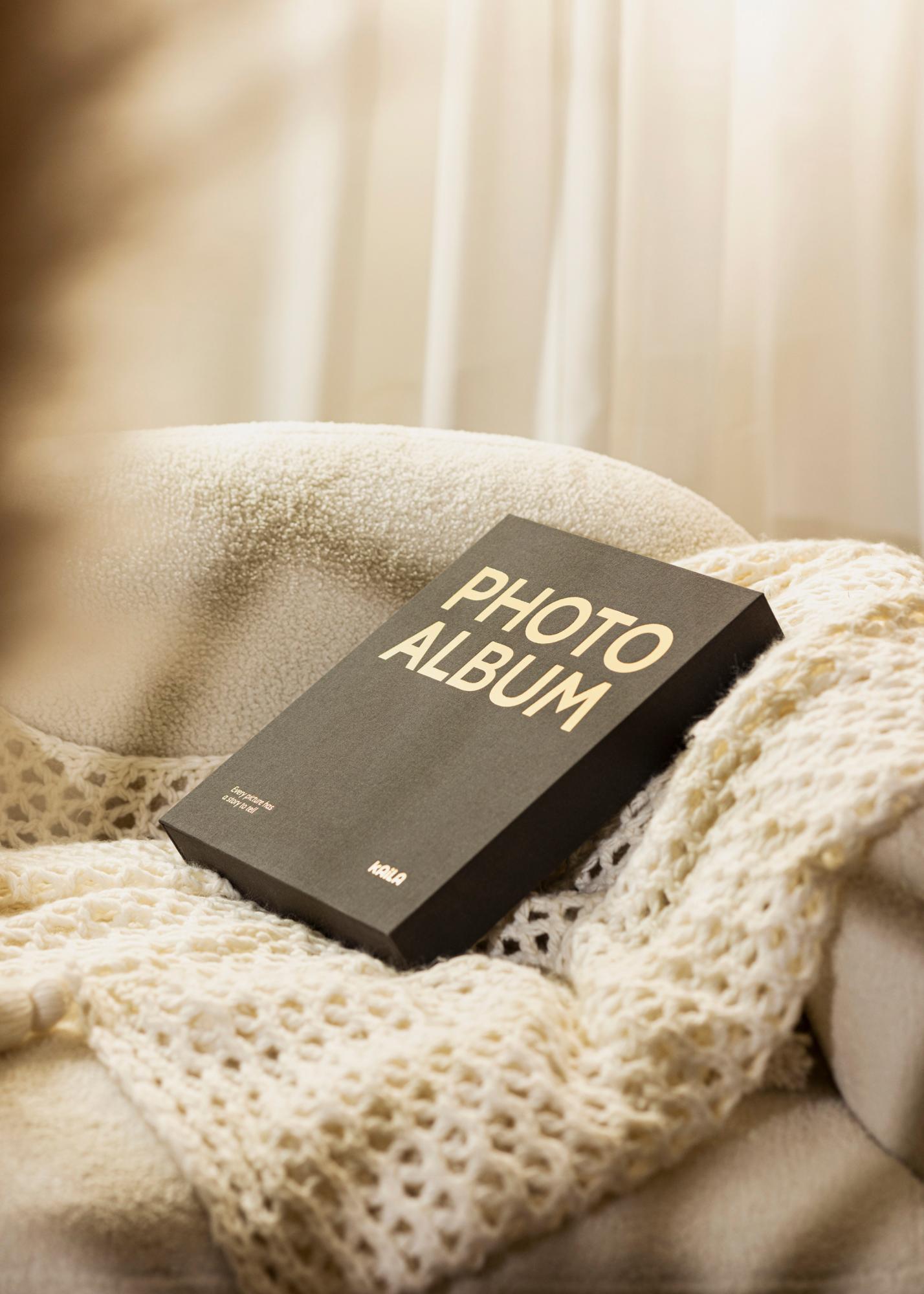 Acesta este albumul foto pentru tine, care cauți un album care să găzduiască amintirile tale cele mai dragi, și care în același timp arată bine pe masă. Albumul este conceput ca o Carte pentru Măsuța de Caféa, cu un design modern care devine un decor evident pe masa din sufragerie sau în bibliotecă. Este realizat ca o cutie exclusivă, cu un învelitoare în stil textil negru simplu. Când deschizi albumul, ești întâmpinat de un biblioraft cu 60 de pagini negre pentru albume (30 de foi) pe care le poți umple cu fotografii din momente frumoase. Poți lipi fotografiile exact unde dorești.