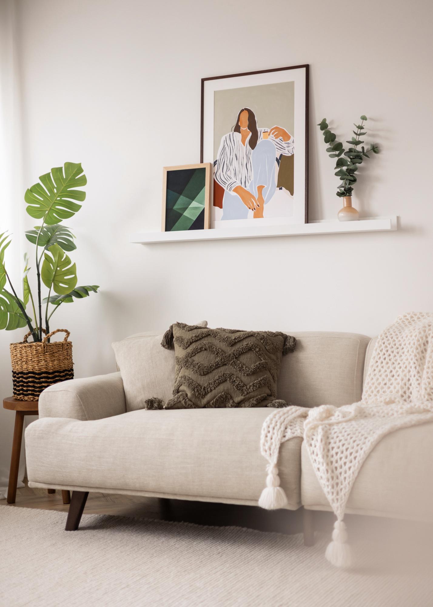 Cu un raft practic pentru tablouri, poți expune și varia tablourile tale cu ușurință și eleganță! Acest raft elegant pentru tablouri este fabricat din MDF și este vopsit în alb cu o suprafață frumoasă, semilucioasă. Designul este elegant, cu linii simple și drepte și o senzație minimalistă, atemporală. În mijlocul raftului, o canelură frezată oferă suport pentru tablourile tale și le oferă un unghi perfect, sprijinite de perete. Raftul pentru tablouri are, de asemenea, găuri pre-găurite, iar pachetul include șuruburi și dibluri adecvate pentru a face totul puțin mai ușor!