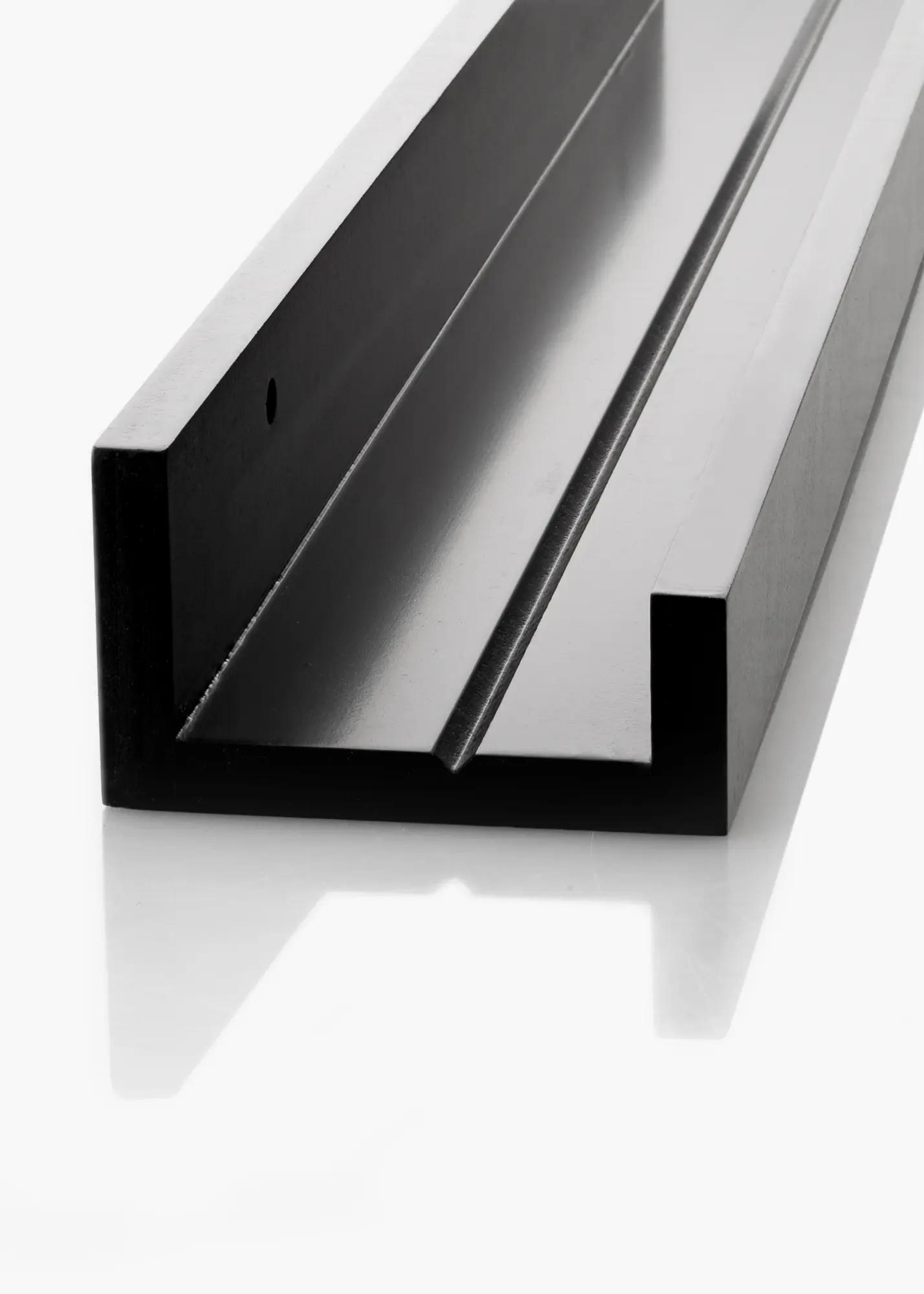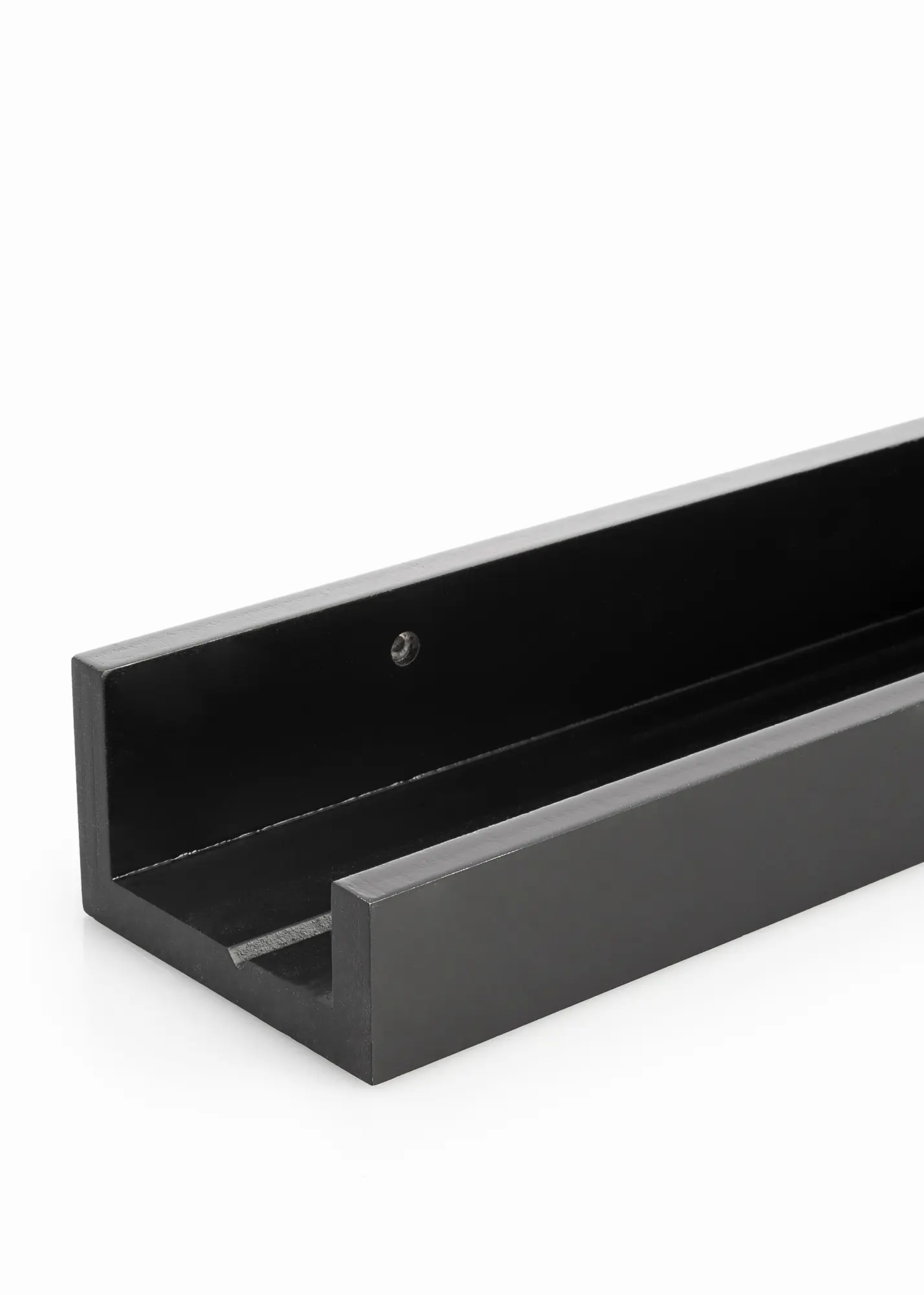 Expuneți și variați arta de perete simplu și elegant cu un raft de rame rafinat! Acest raft de rame este fabricat din MDF și este vopsit într-o culoare neagră la modă cu o suprafață fină, semi-lucioasă. Raftul de rame are un design elegant, cu linii drepte și simple și un aspect minimalist. Planul raftului are o canelură frezată în mijloc care servește ca suport pentru ramele tale și le oferă un unghi frumos, unde stau înclinate spre perete.
