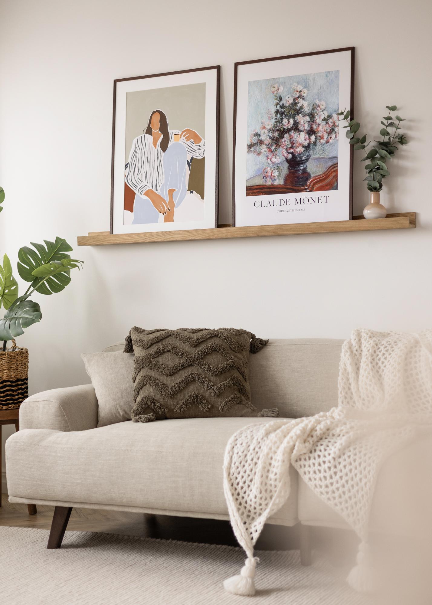 Cu o etajeră de tablouri practică, îți expui tablourile într-un mod elegant și obții, de asemenea, oportunități excelente de a varia arta de pe perete. Această etajeră de tablouri este fabricată din stejar masiv și are un design stilat, cu linii simple și drepte. Suprafața poliței are o crestătură frezată care oferă sprijin tablourilor tale și le conferă un unghi plăcut atunci când sunt așezate înclinându-se către perete. Etajera de tablouri este disponibilă în mai multe lungimi, dintre care această variantă are o lungime de 150 cm. Etajera de tablouri are de asemenea găuri pre-găurite, iar pentru a face totul și mai simplu, sunt incluse și șuruburi și dibluri adecvate.