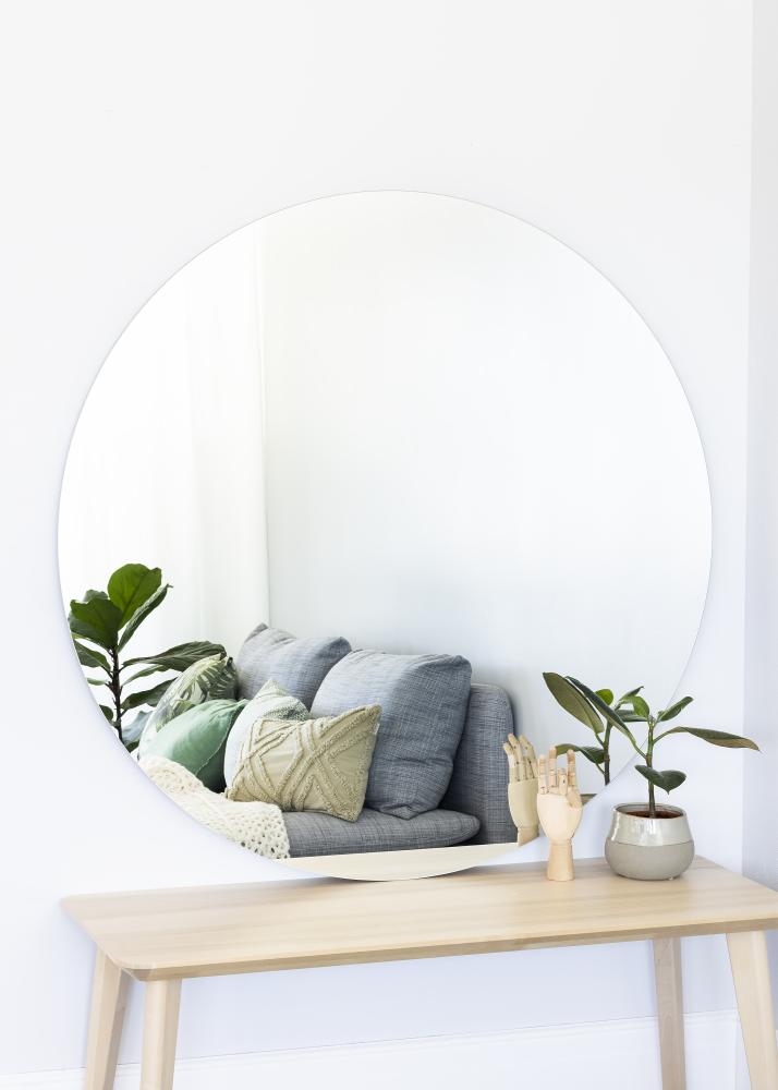 Oglindă rotundă de 120 cm Ø care face parte dintr-o serie de oglinzi rotunde de la KAILA. Disponibilă în 13 dimensiuni, astfel încât să găsești dimensiunea care se potrivește perfect cu camera ta. Oglinda este extrem de subțire și elegantă și se potrivește în toate tipurile de camere și stiluri de decor.