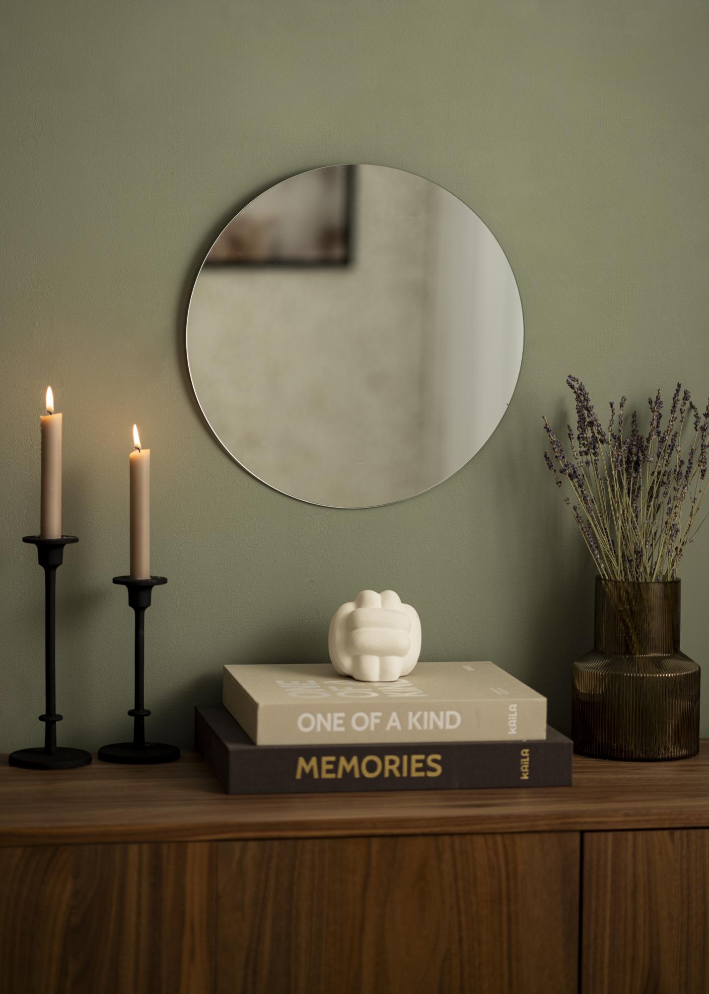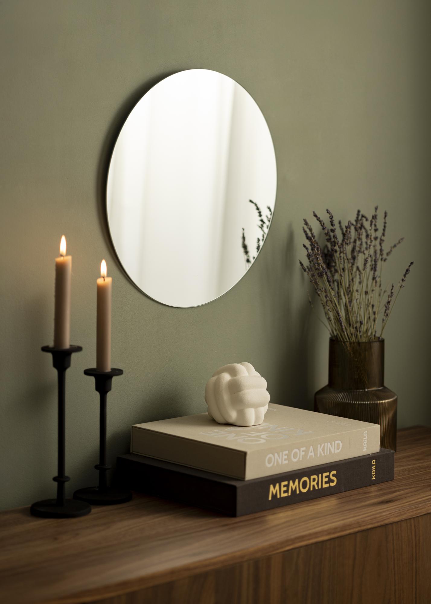 Oglindă rotundă de 40 cm Ø care face parte dintr-o serie de oglinzi rotunde de la KAILA. Disponibilă în 13 dimensiuni diferite, astfel încât să găsești dimensiunea care se potrivește perfect în camera ta. Oglinda este extrem de subțire și elegantă, potrivită pentru toate tipurile de camere și stiluri de decor.
