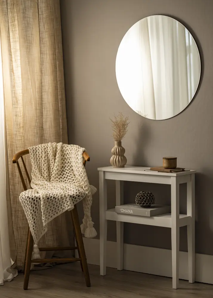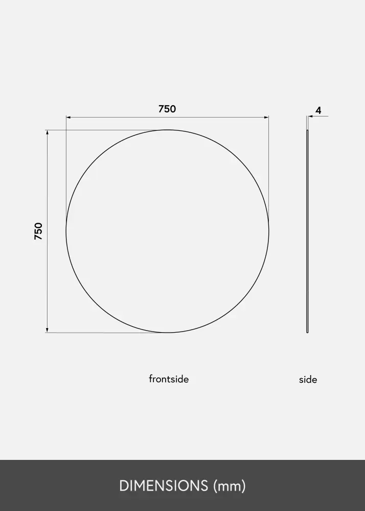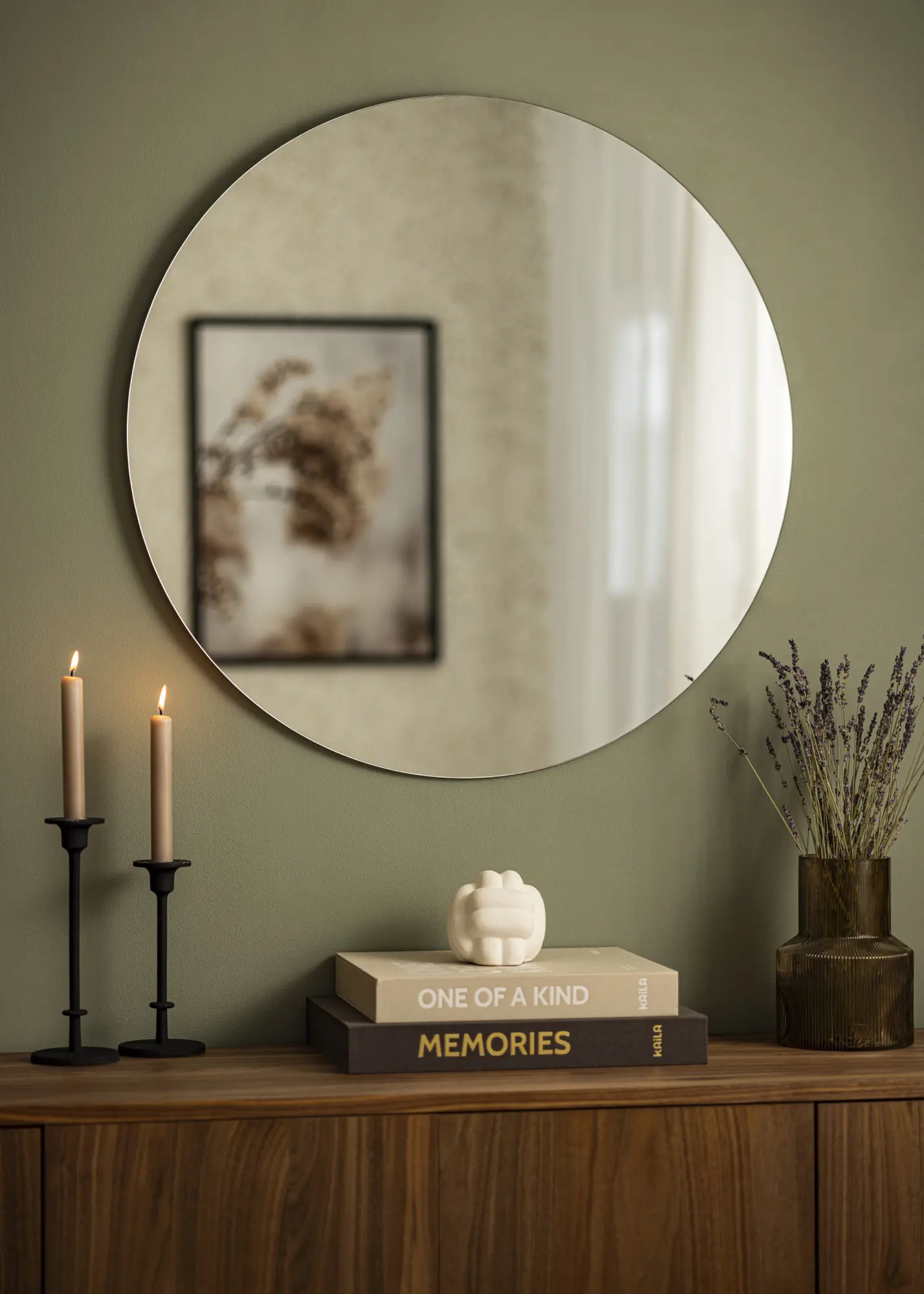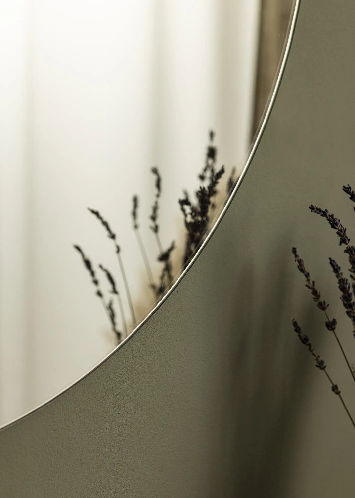 Oglindă rotundă de 75 cm Ø, care face parte dintr-o serie de oglinzi rotunde de la KAILA. Disponibilă în 13 dimensiuni pentru a găsi dimensiunea care se potrivește perfect camerei tale. Oglinda este extrem de subțire și elegantă și se potrivește în toate tipurile de camere și stiluri de decor.